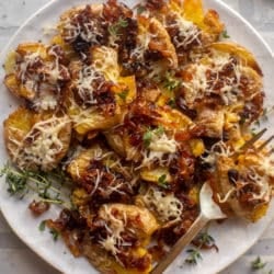 Need a fancy side dish for the holiday season? Hello, this is it! These are rich, decadent, delicious and taste just like a bowl of french onion soup. On a crispy potato!