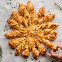 You may remember a few years ago when I made these spinach artichoke puff pastry twists. They are SO GOOD!! The star twist is easier to make than it looks, it’s super delicious and so pretty to look at. It looks so much fancier than it is!