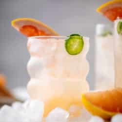 - Garnish with grapefruit and more jalapeño slices. Enjoy!