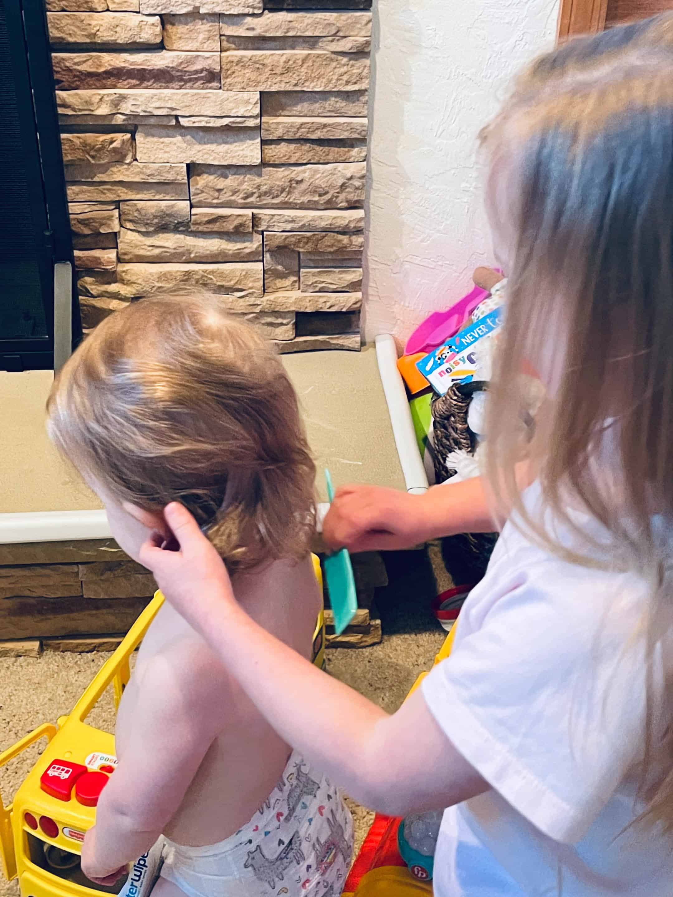Emilia’s exact words were “Stay still Jordy, this is going to take a long time.” And he stayed completely still while she combed his hair.
