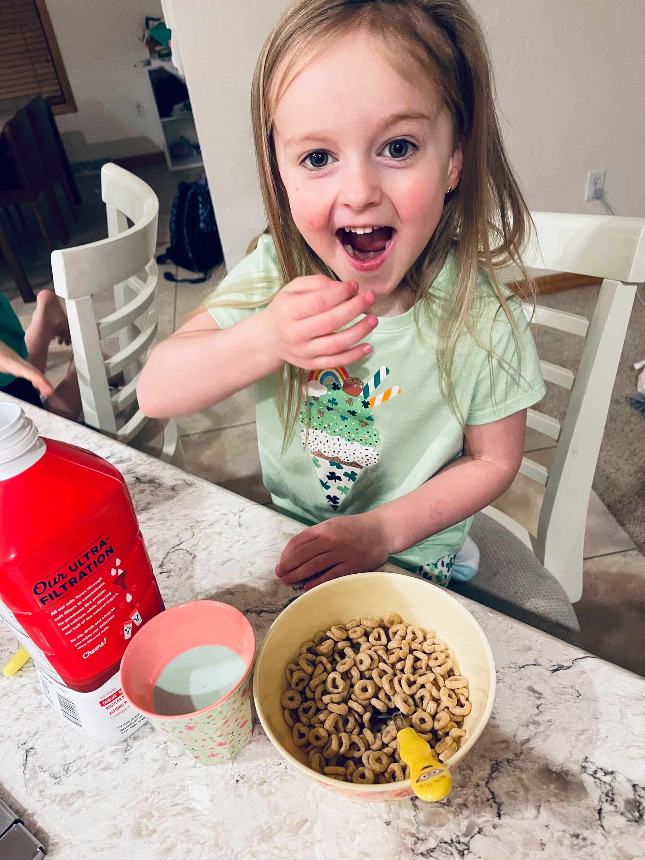 The leprechaun dyed the milk green.
