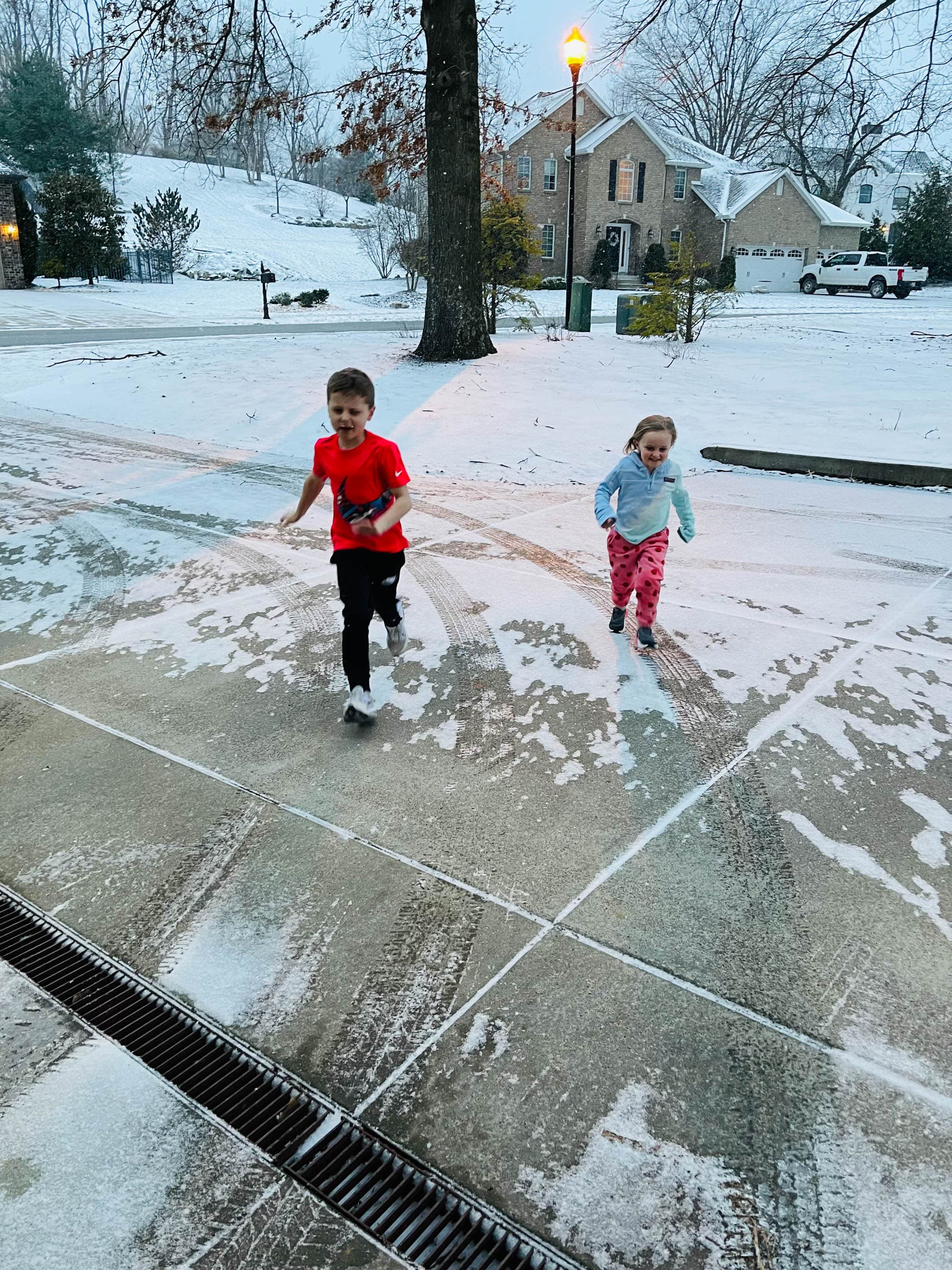 When we got home it snowed and the kids couldn’t help but run out there.