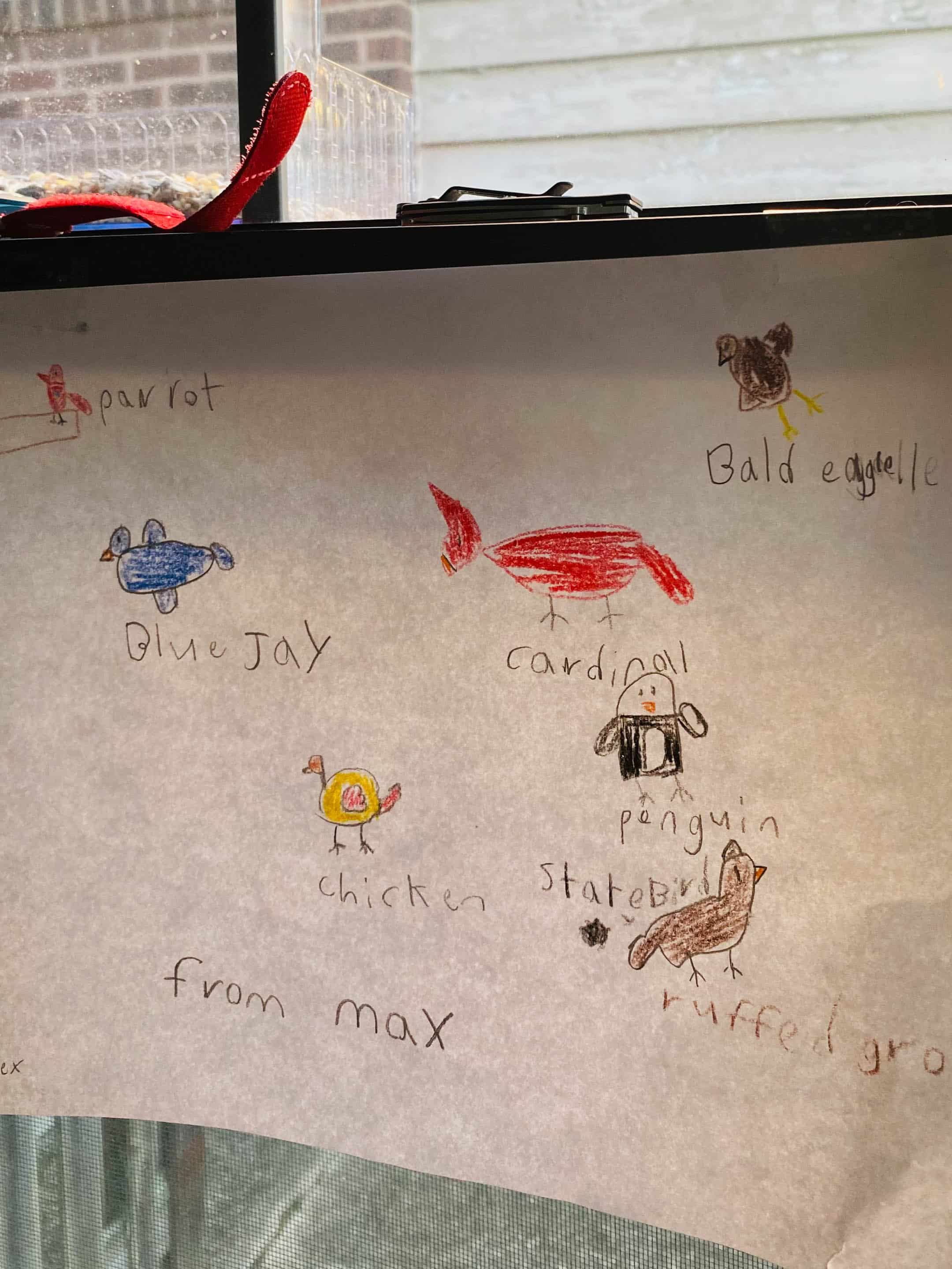 We’re very into bird watching over here so max drew some. He also made my mom a “study guide” so she can learn geography better.