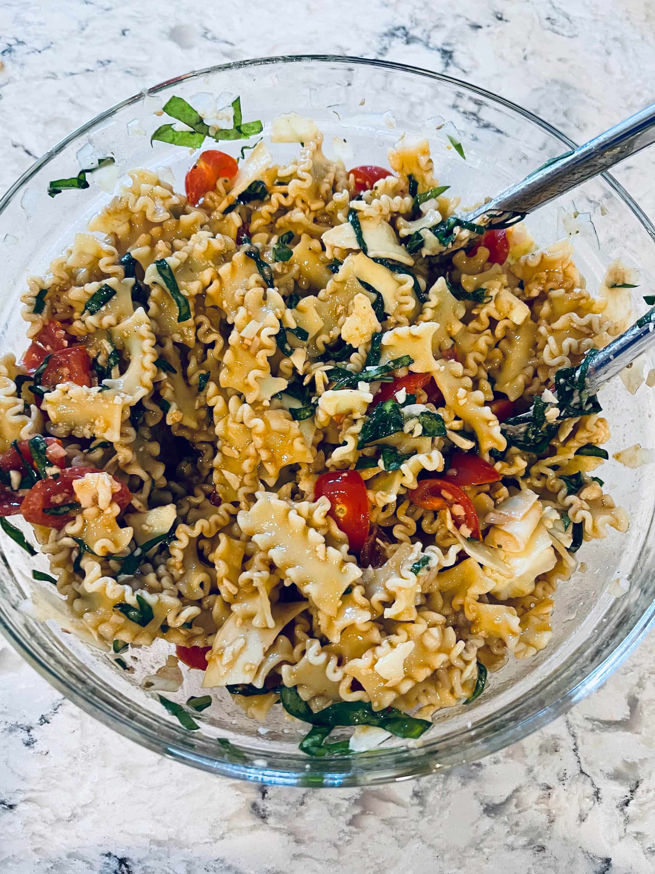 We ate some bruschetta pasta salad all week.