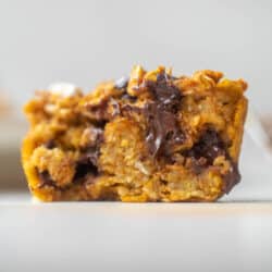 These pumpkin baked oatmeal cups are super delicious, filled with pumpkin pie flavor, chewy oats, an option for a cheesecake filling or chocolate chips, and best of all – baked in a bite size muffin tin making them ideal for meal prep.