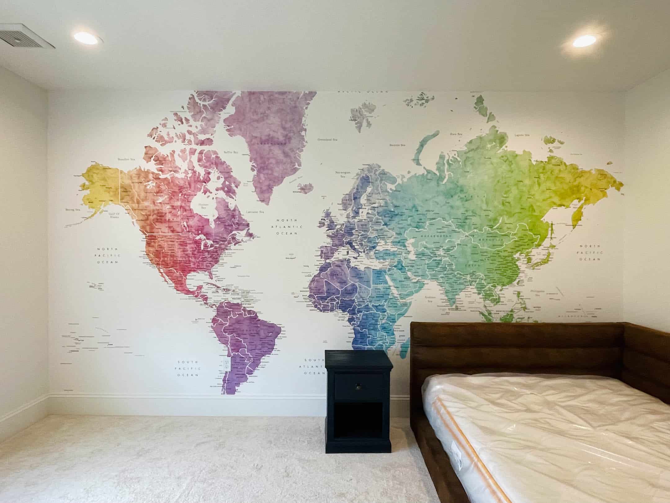 And here’s a peek at the kids’ rooms before they are set up! Max’s love of geography…