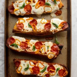I know, I know. French bread pizza is nothing new. In fact, I shared my first one here on the blog almost 14 years ago.