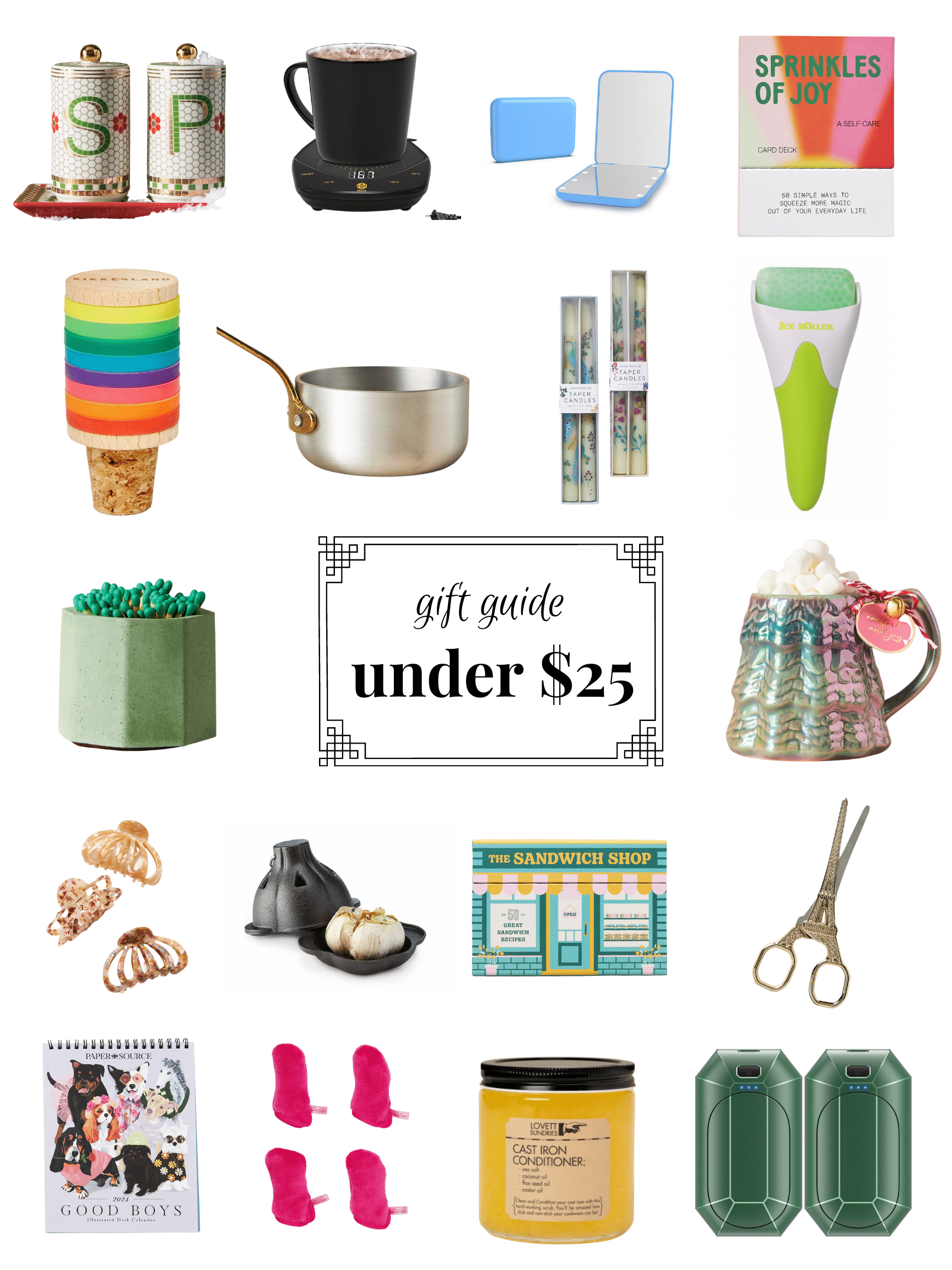 I love making gift guides and this is crazy – it’s my 13th year making them. This is always my favorite gift guide to make. It’s easily the price range where I find myself buying the most gifts – whether it’s for a grab bag family gift (we pick names in a few instances in our family and it’s GREAT – highly suggest doing this if you haven’t yet.), a stocking stuffer, a teacher gift, a work gift, etc. And I have SO MANY IDEAS for you here.