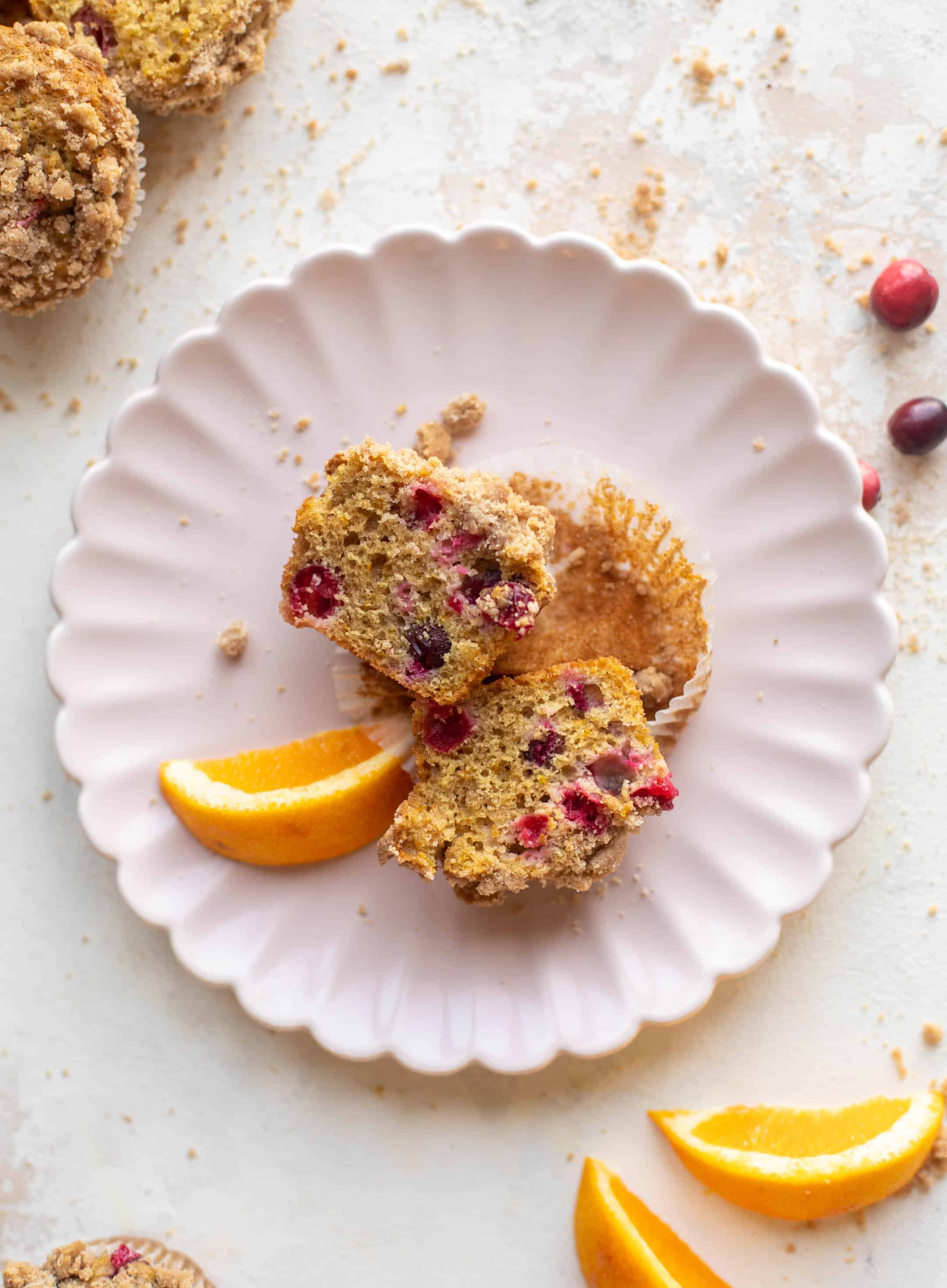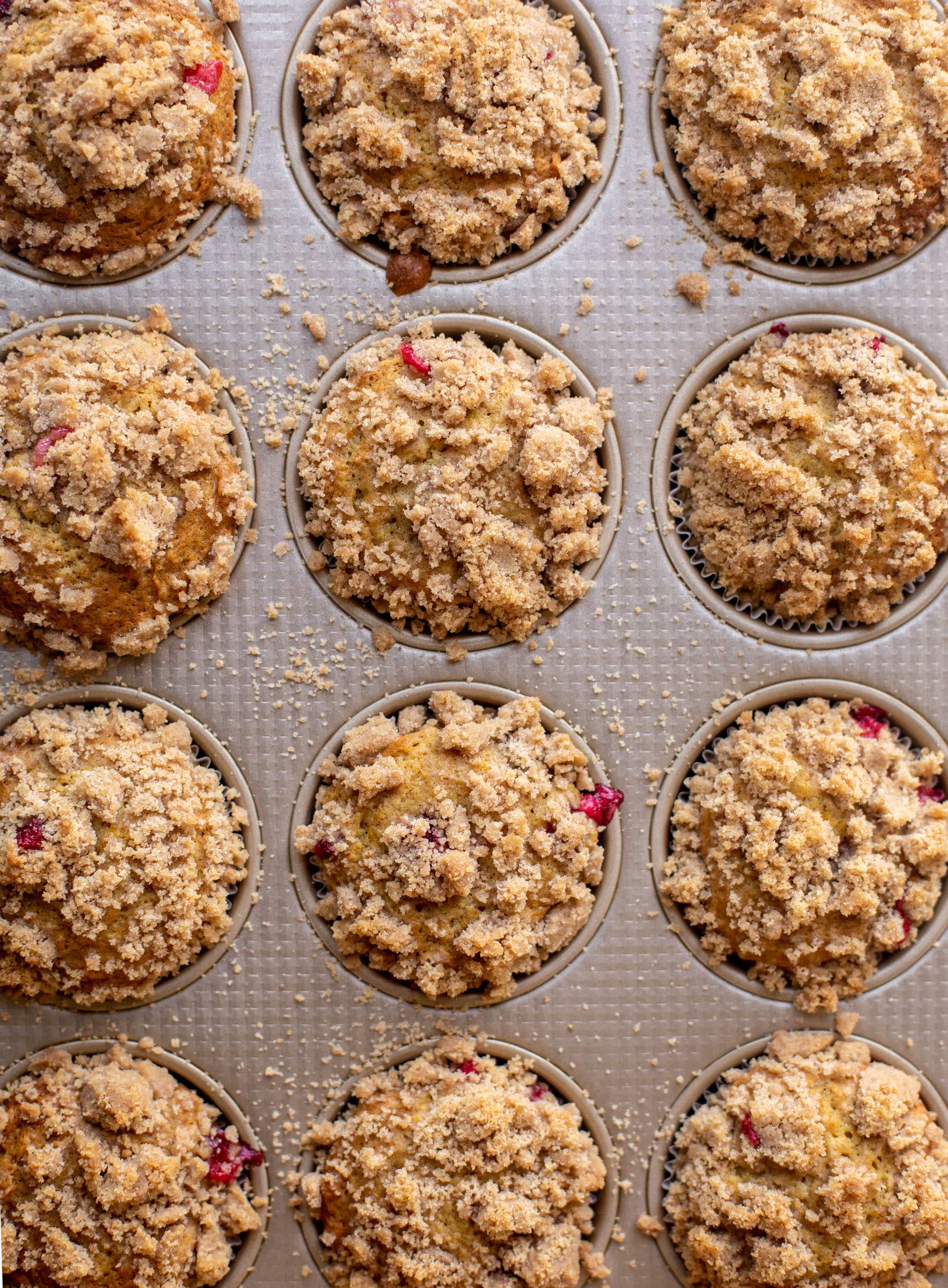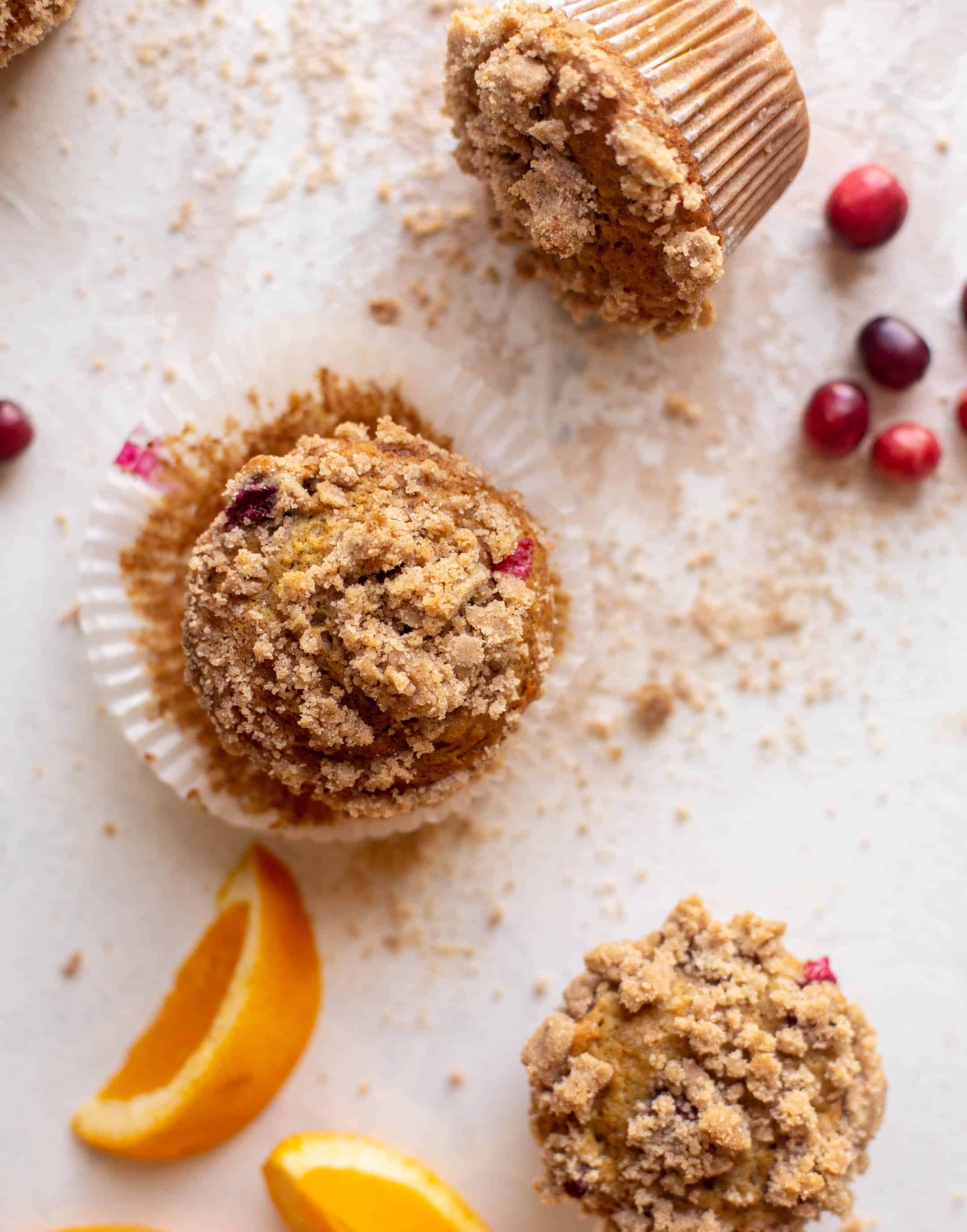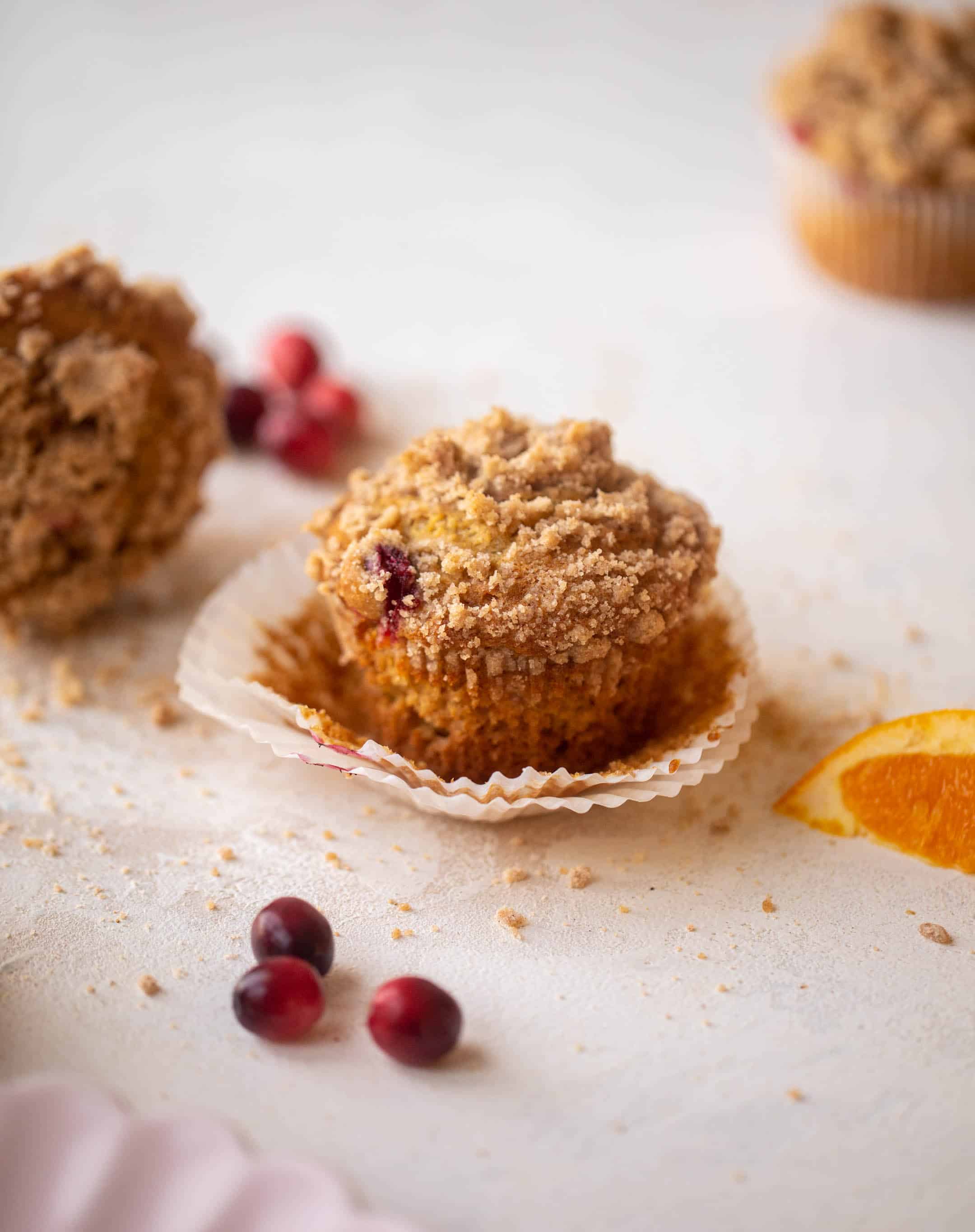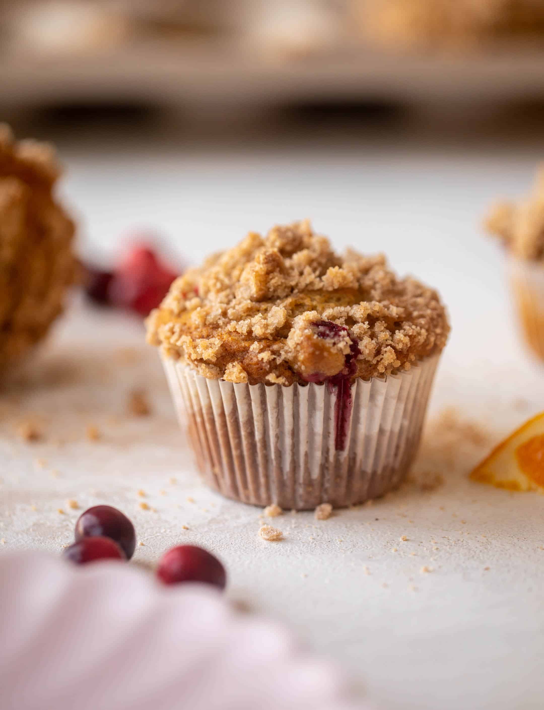 These cranberry orange muffins are a holiday dream! Tart, bright cranberries mixed with tangy orange zest and a crumb topping – they are fluffy and soft with a crunchy top!