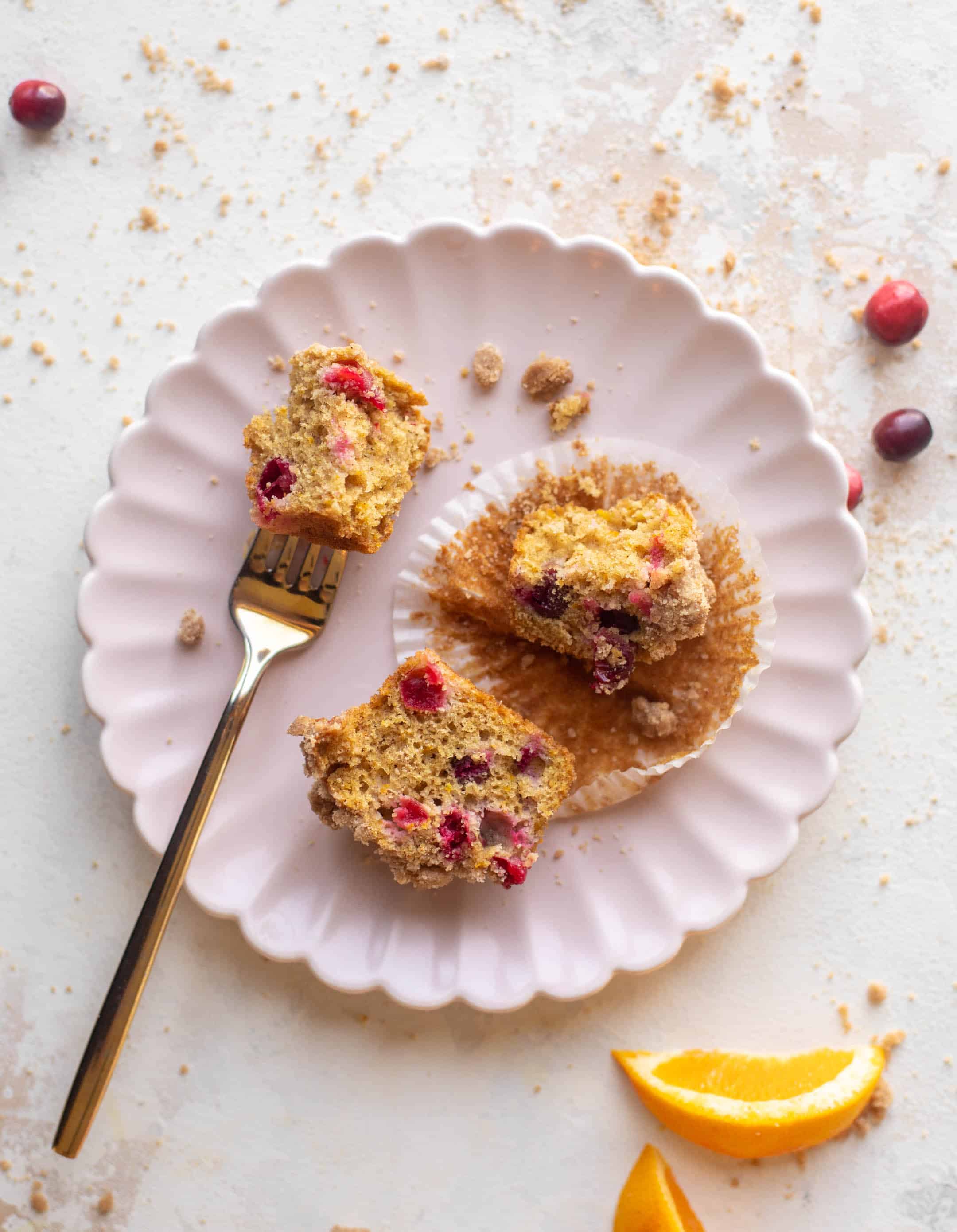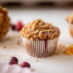 My cranberry orange muffins are soft and fluffy with a crunchy streusel topping. It’s like a two-bite coffee cake and makes the perfect breakfast or treat.