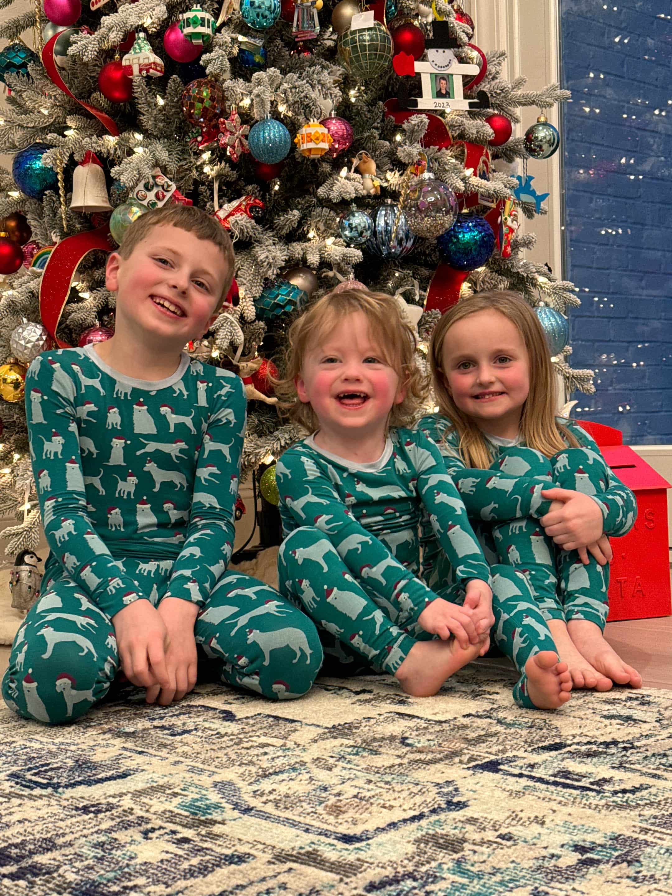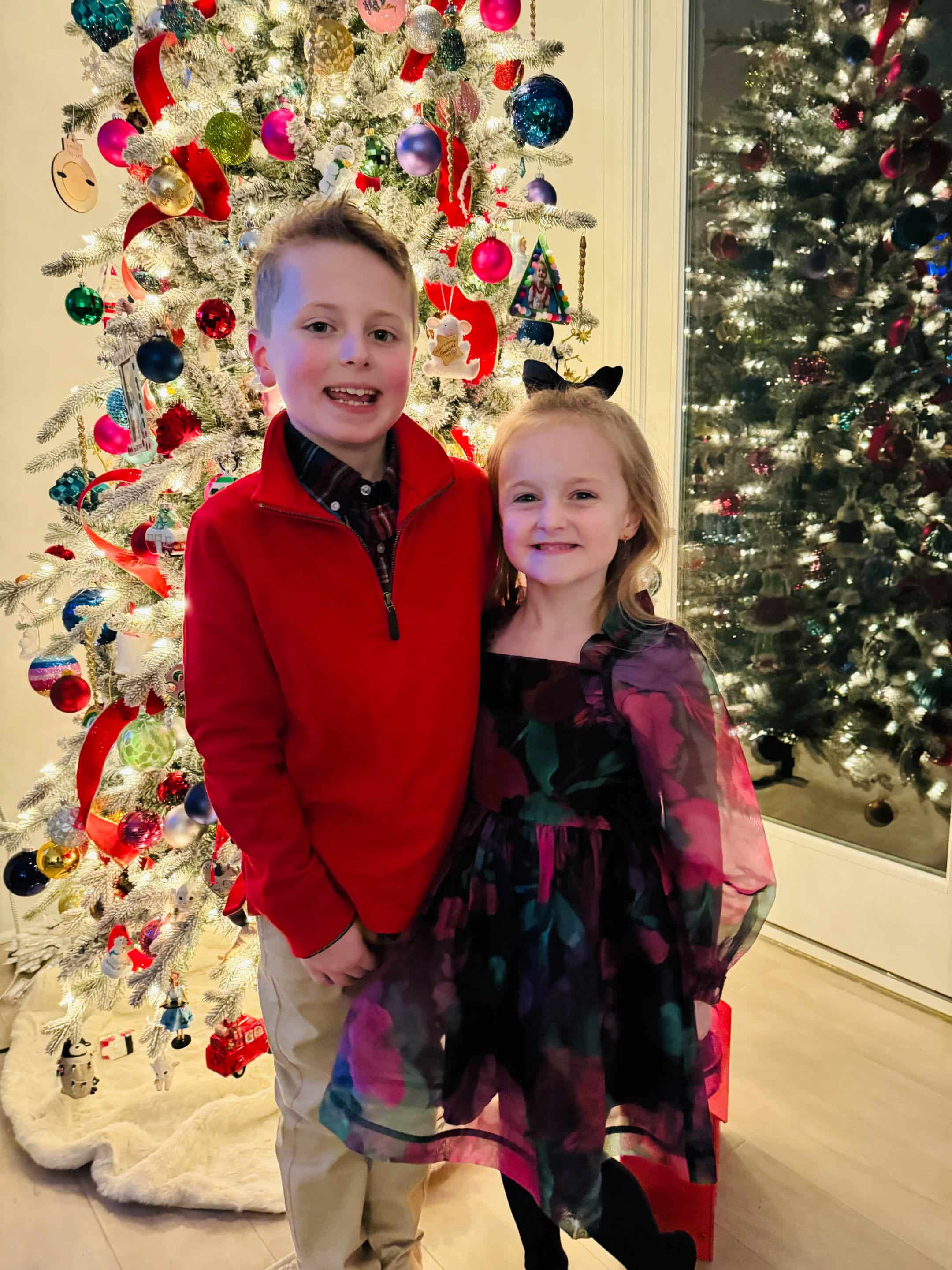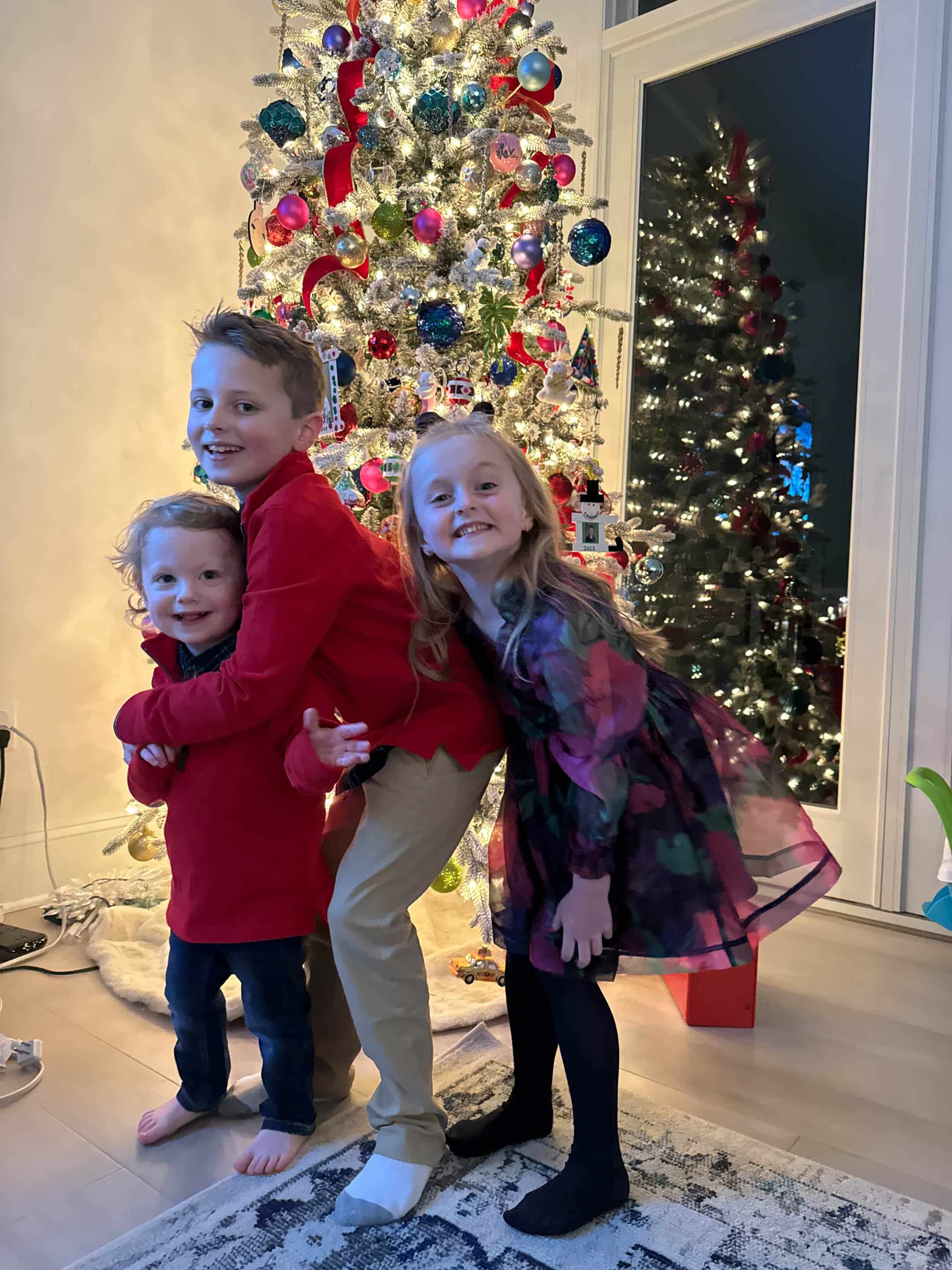As always Emilia has the best outfits. Can’t get over how much Jordan is growing, and Max looked so adorable in his Christmas outfit. Glad he was feeling better by Christmas. Love your moms tree. It could be in hallmark movie for sure.