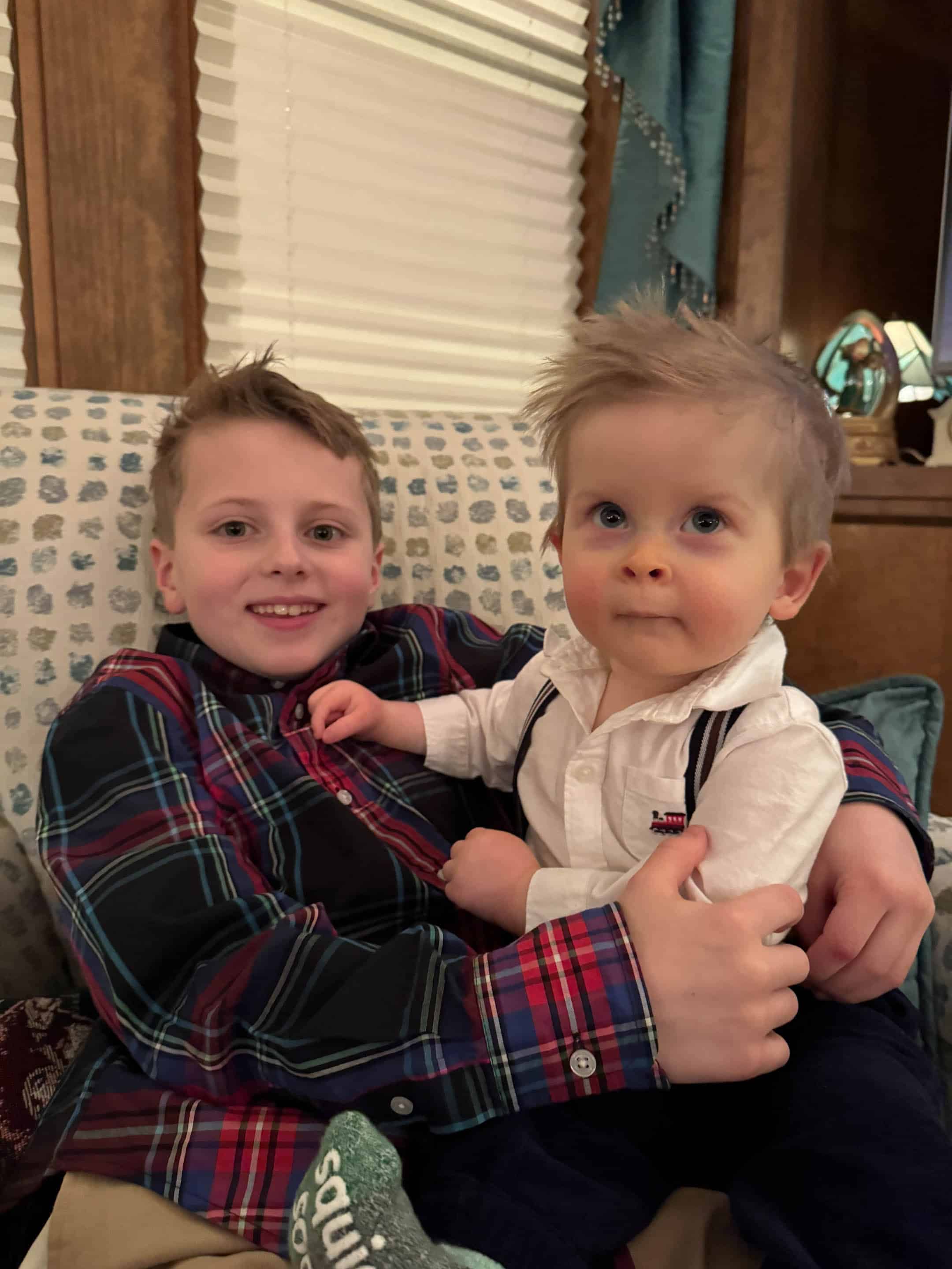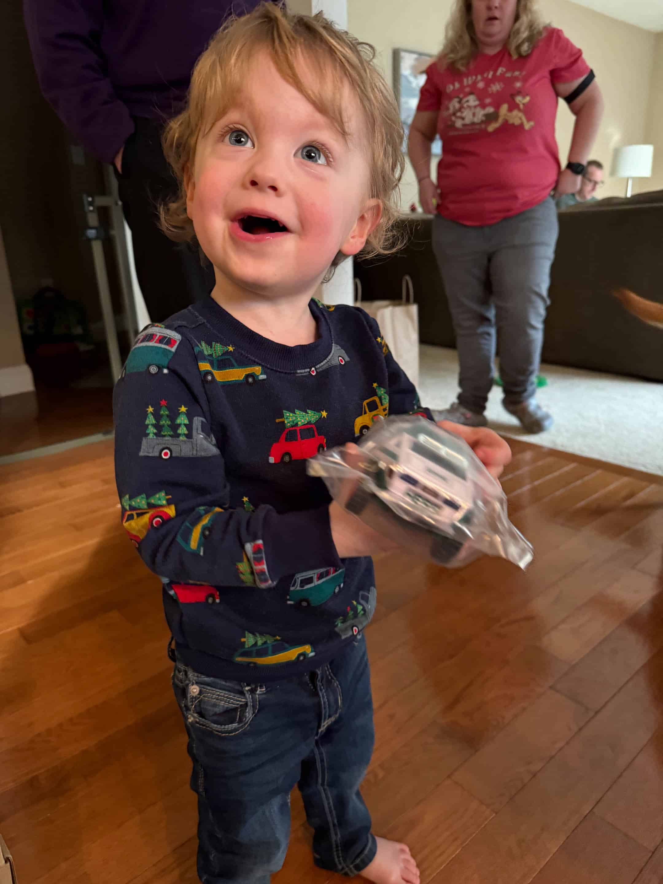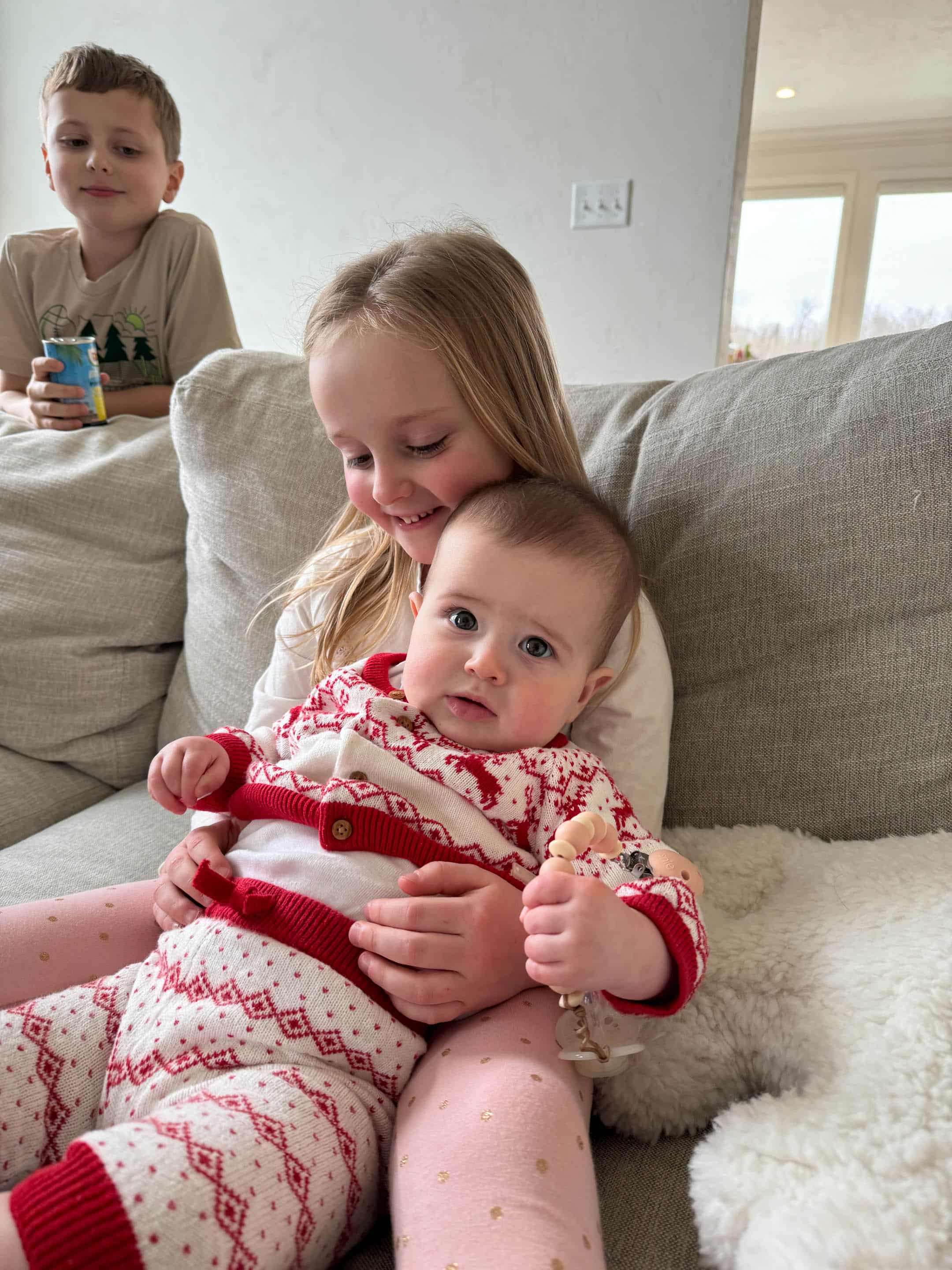 As always Emilia has the best outfits. Can’t get over how much Jordan is growing, and Max looked so adorable in his Christmas outfit. Glad he was feeling better by Christmas. Love your moms tree. It could be in hallmark movie for sure.