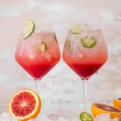 If jalapeno isn’t your speed, I have plenty of other blood orange drinks that you can make. My favorite is this blood orange aperol spritz. It’s so pretty. Of course, the aforementioned blood orange cooler.