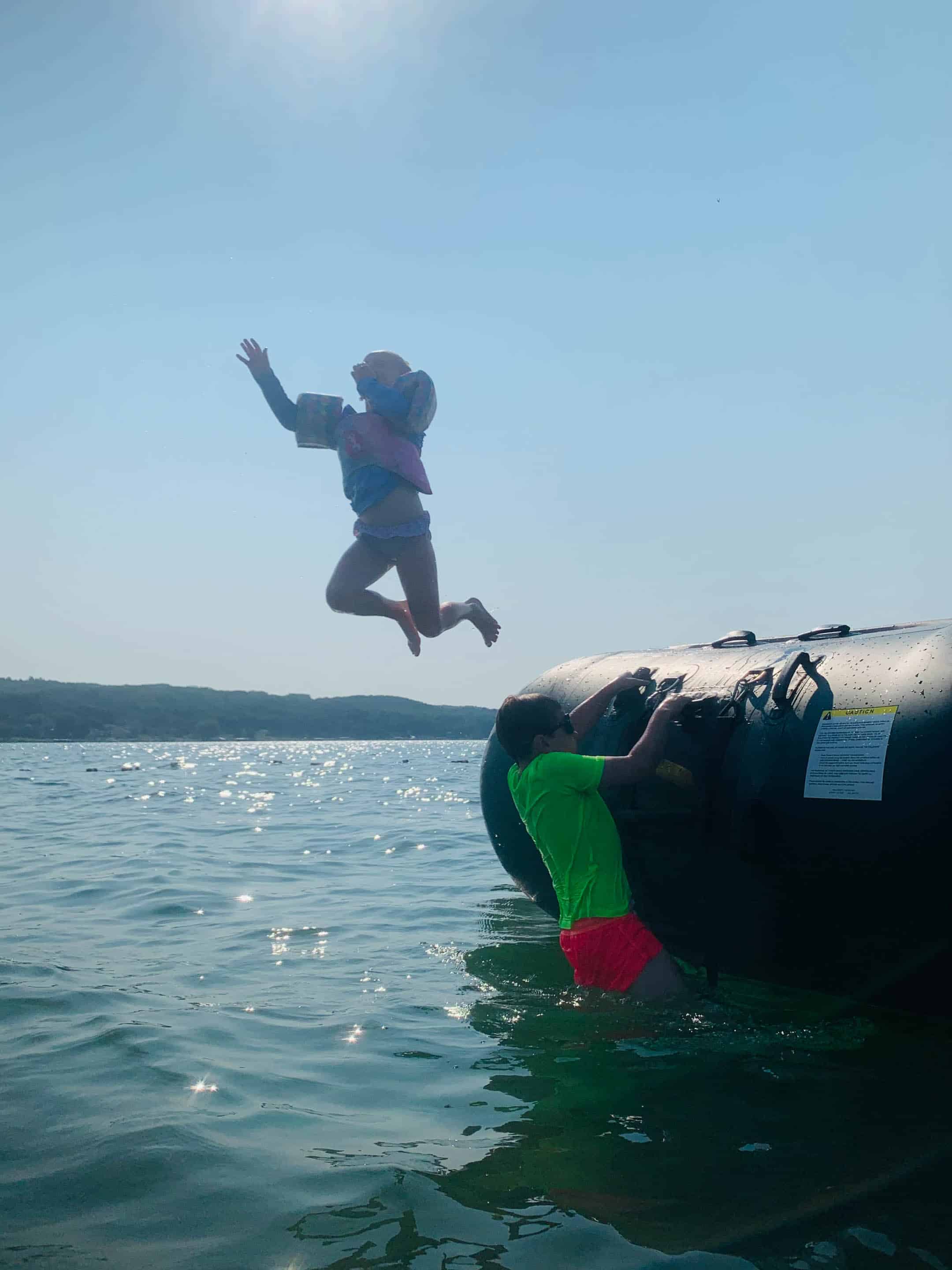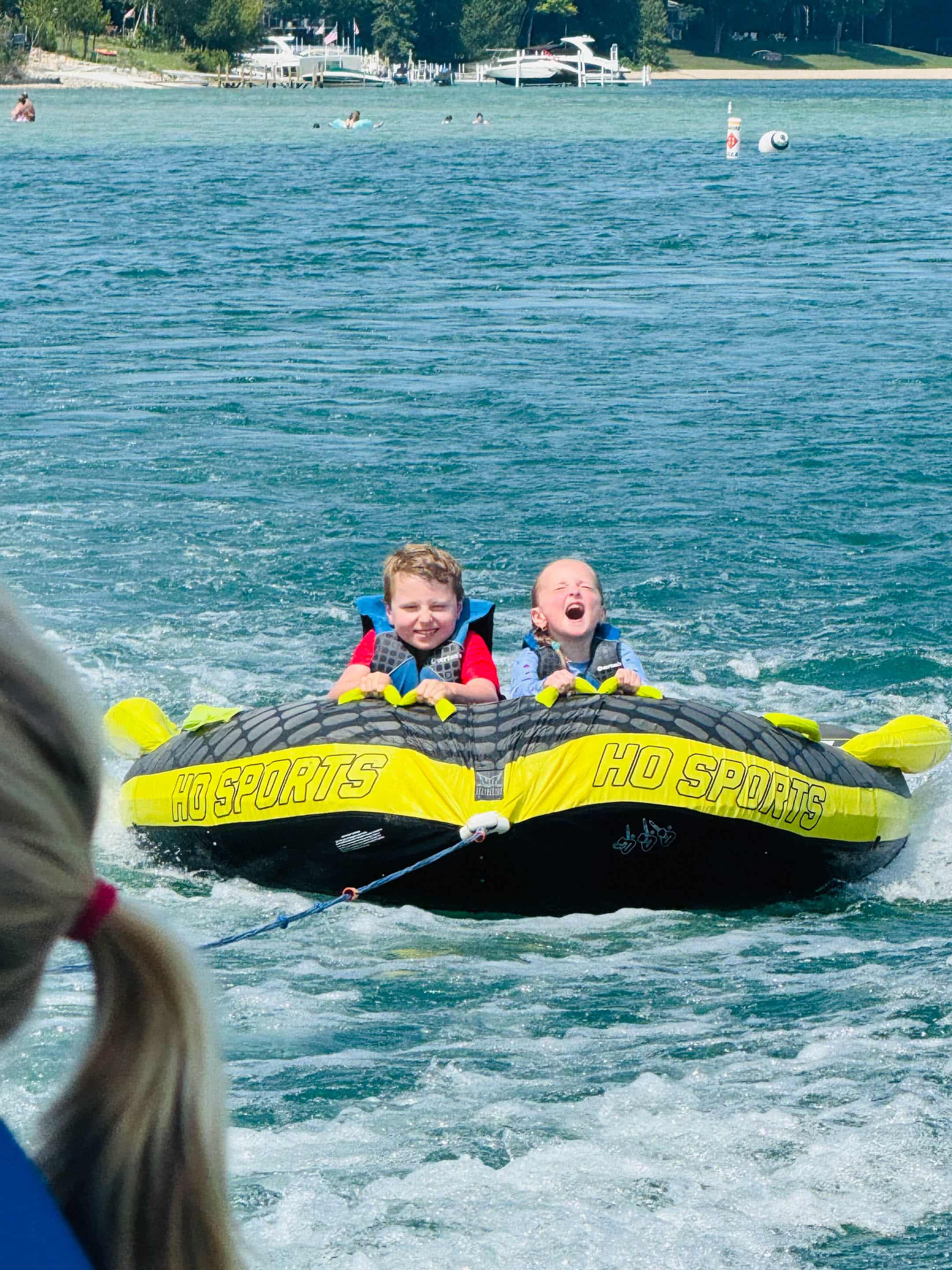 The trampoline in the water is something they look forward to all year.