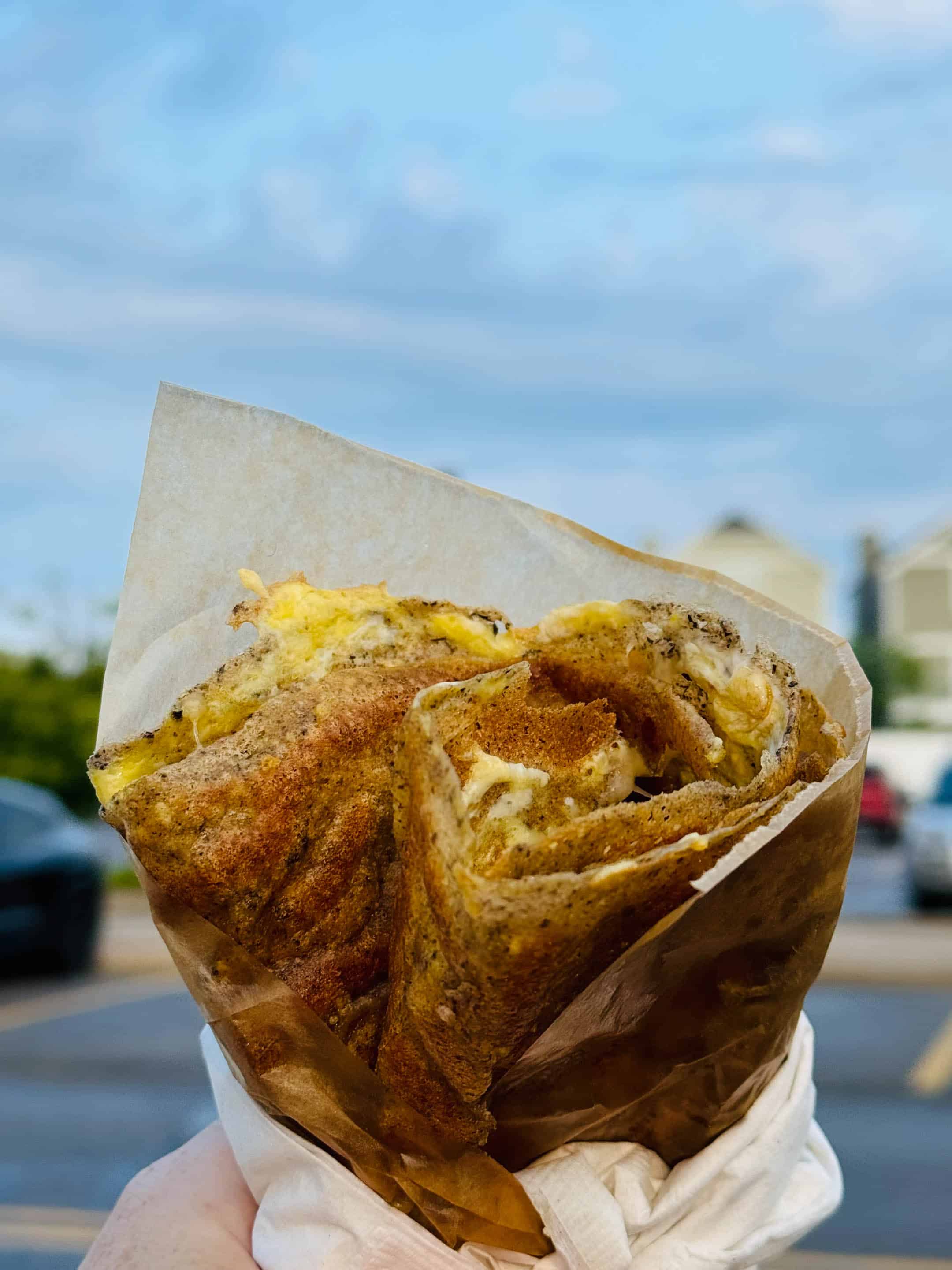 Caramelized onion + egg crepe. Yes please.