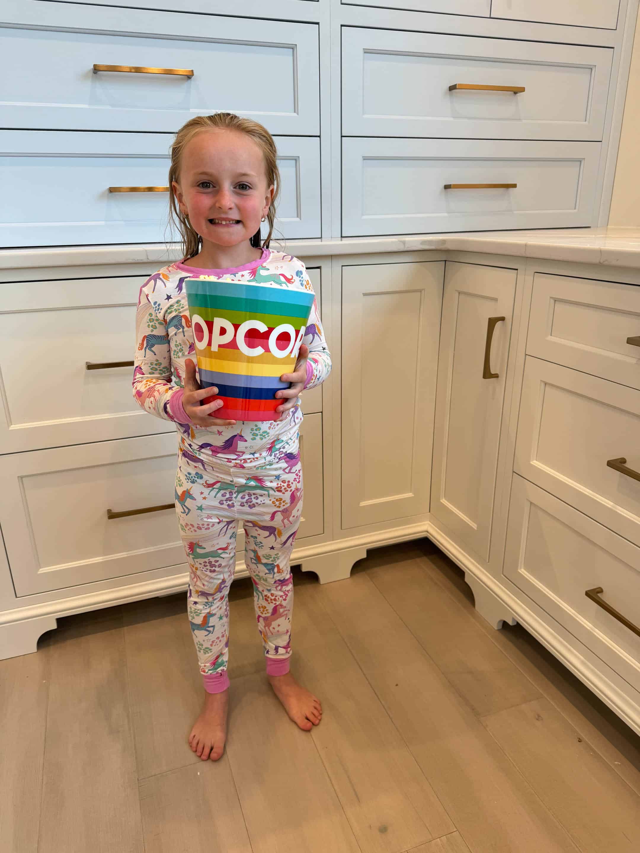 Emilia and I found this popcorn bowl at target and we were SO EXCITED. She could live on popcorn.