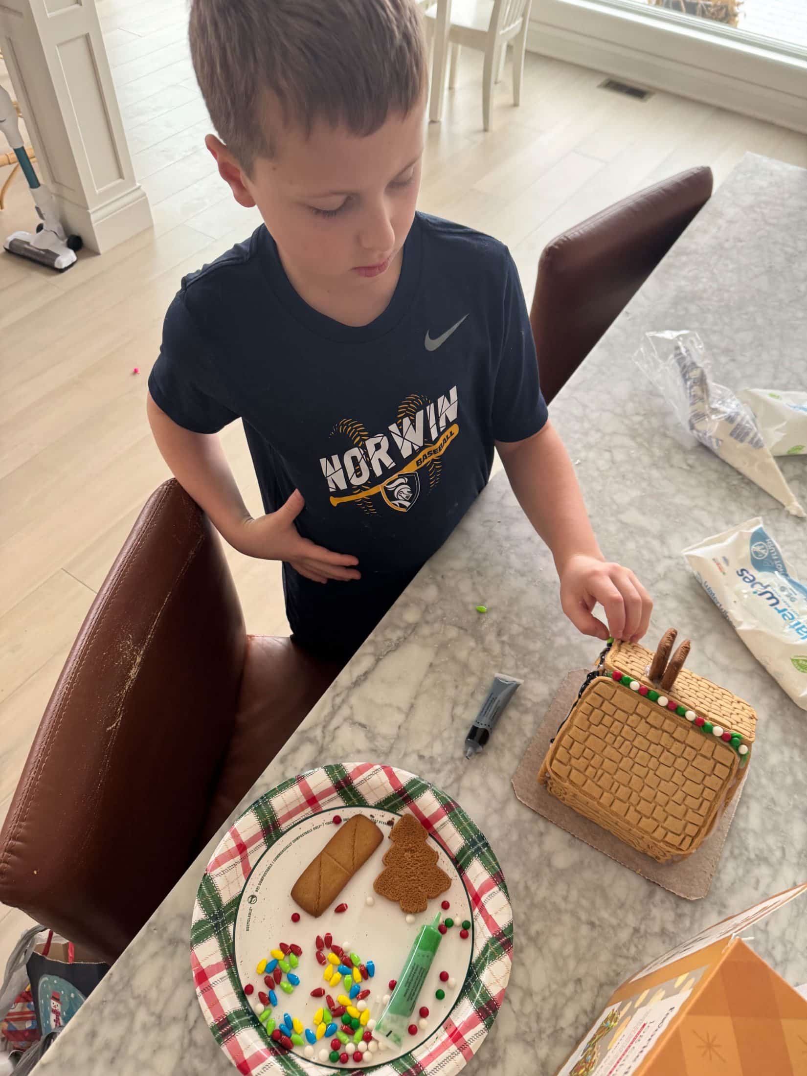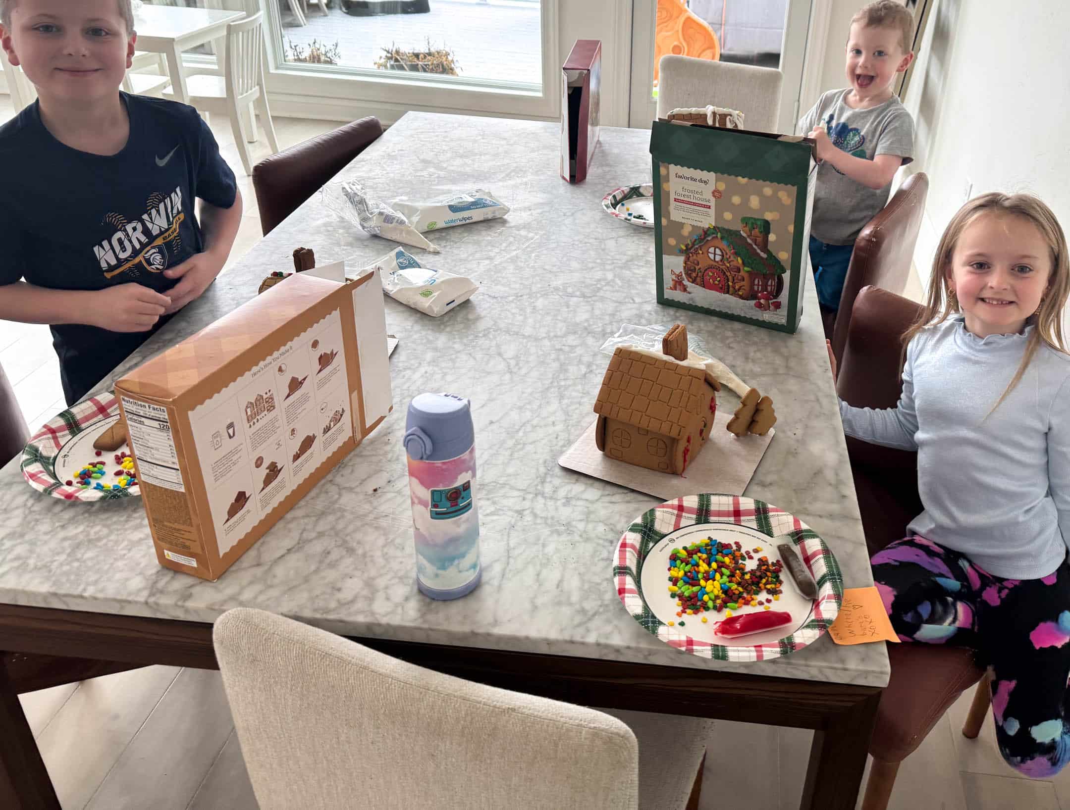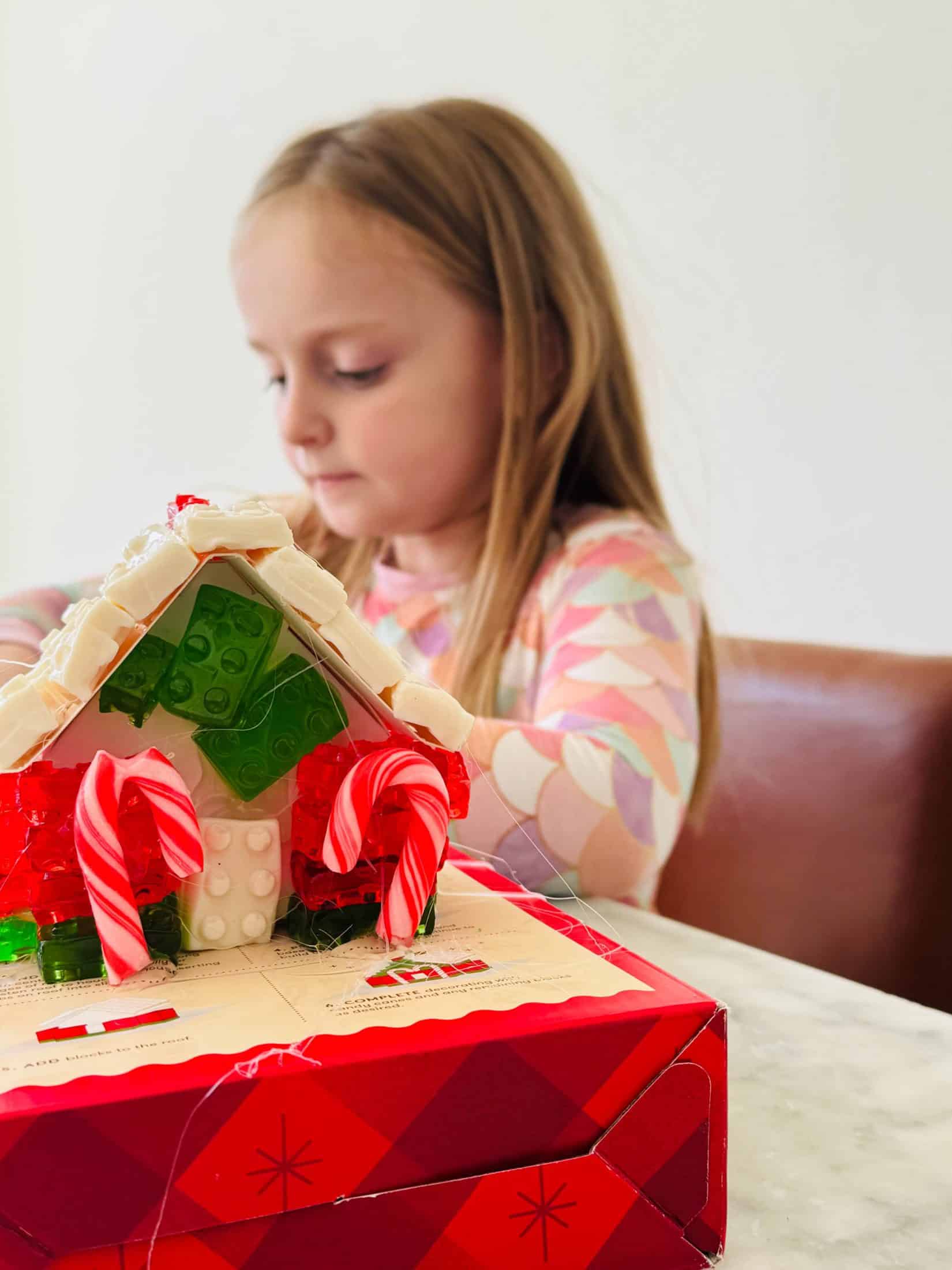 I bought this gummy house for Emilia to do because she loves crafts. It was a piece of true garbage but we tried to save it with hot glue.
