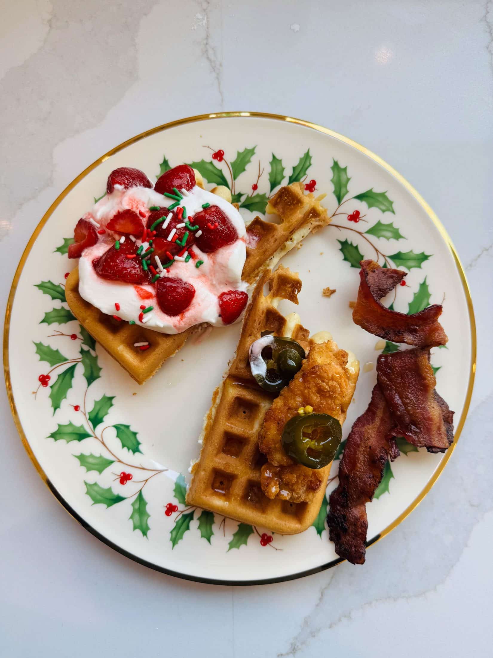 for the waffle bar i even made the bacon and sausage the night before, stored in a glass container with some of the grease and then rewarmed in a low oven on a wire rack and it was so crispy. things like that! i do as much ahead of time as i can!