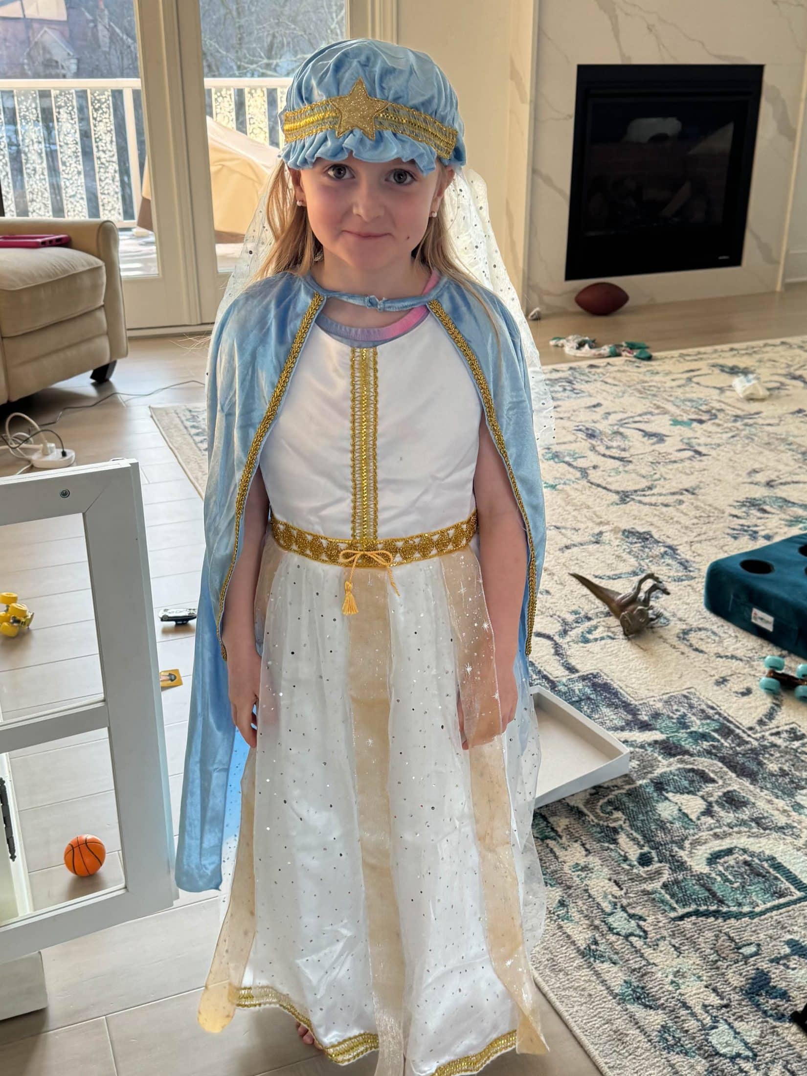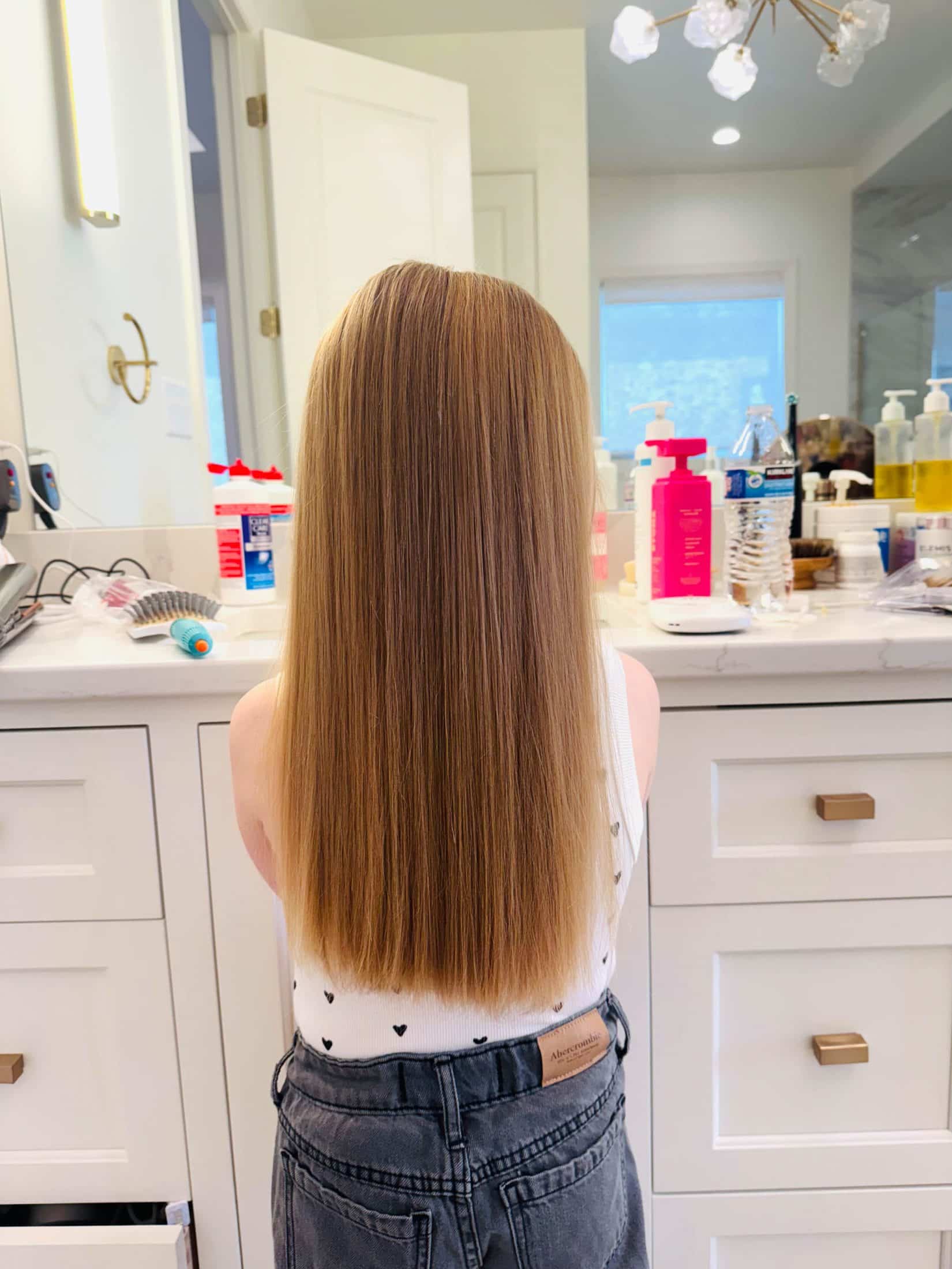 I used the dyson air straight on her hair and she loved it!! Not sure why it looks so crooked… but it was super pretty.