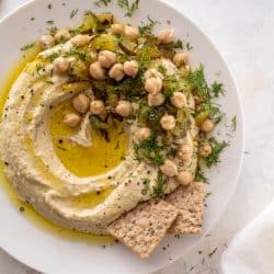 We live for dill pickle hummus! If you’re a pickle freak, this is for you. Creamy homemade hummus made with dill, diced pickles, lots of garlic and tahini. Whipped until smooth and spreadable! Tastes amazing, a huge hit every time.