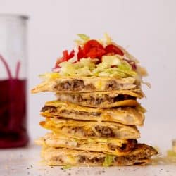 I made this with a couple of mods, but it still came out SO good. First, I had to use corn tortillas instead due to allergies in the family, but the quesadillas were still melty and crispy. Second, I always add veggies any time I cook ground meat, so I cooked in a diced zucchini and a big handful of frozen spinach, both of which disappeared into the mix. Next time, I might even add some diced peppers. Absolutely loved this recipe, thank you!