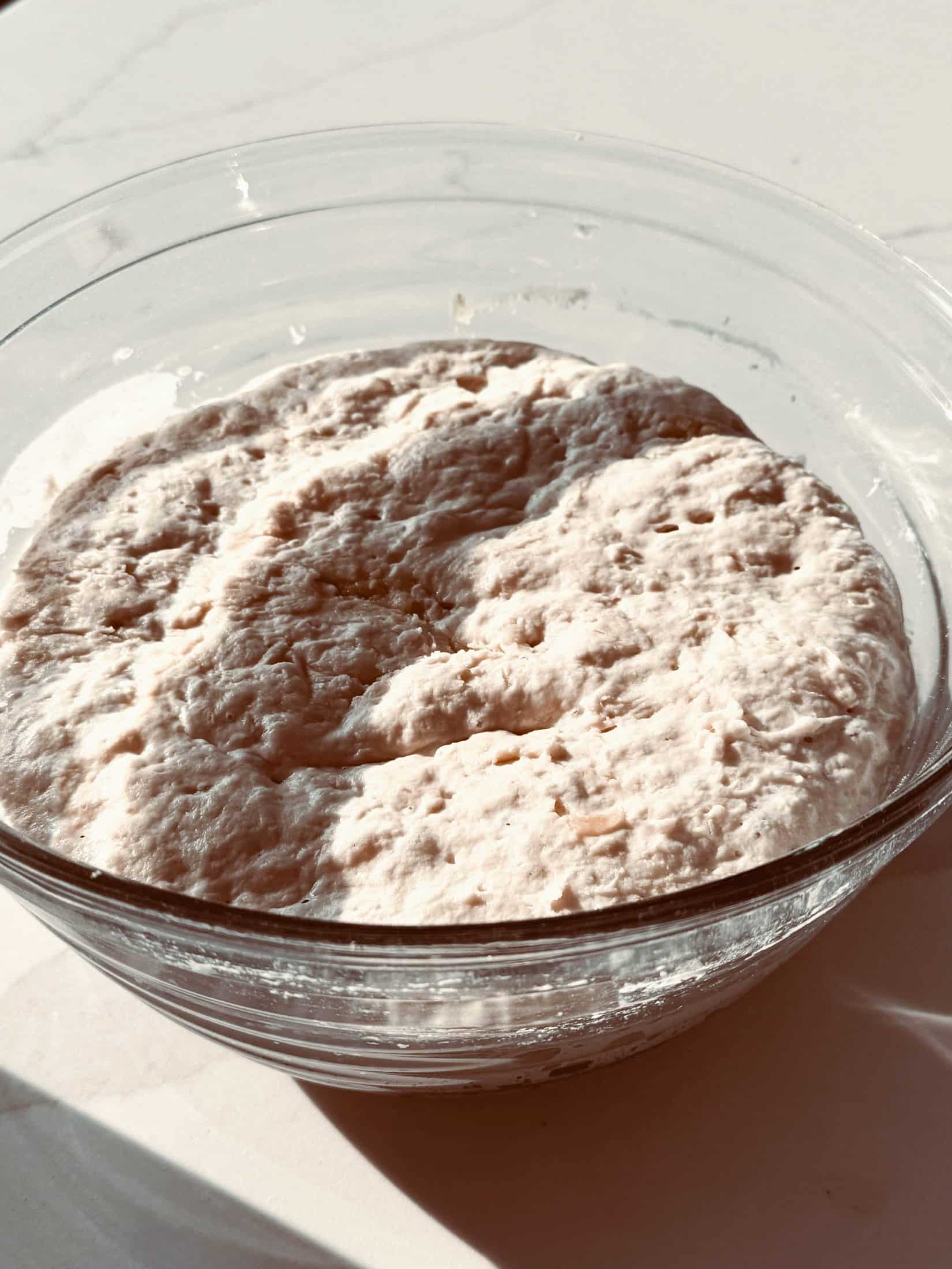 Sourdough pizza dough in the morning.