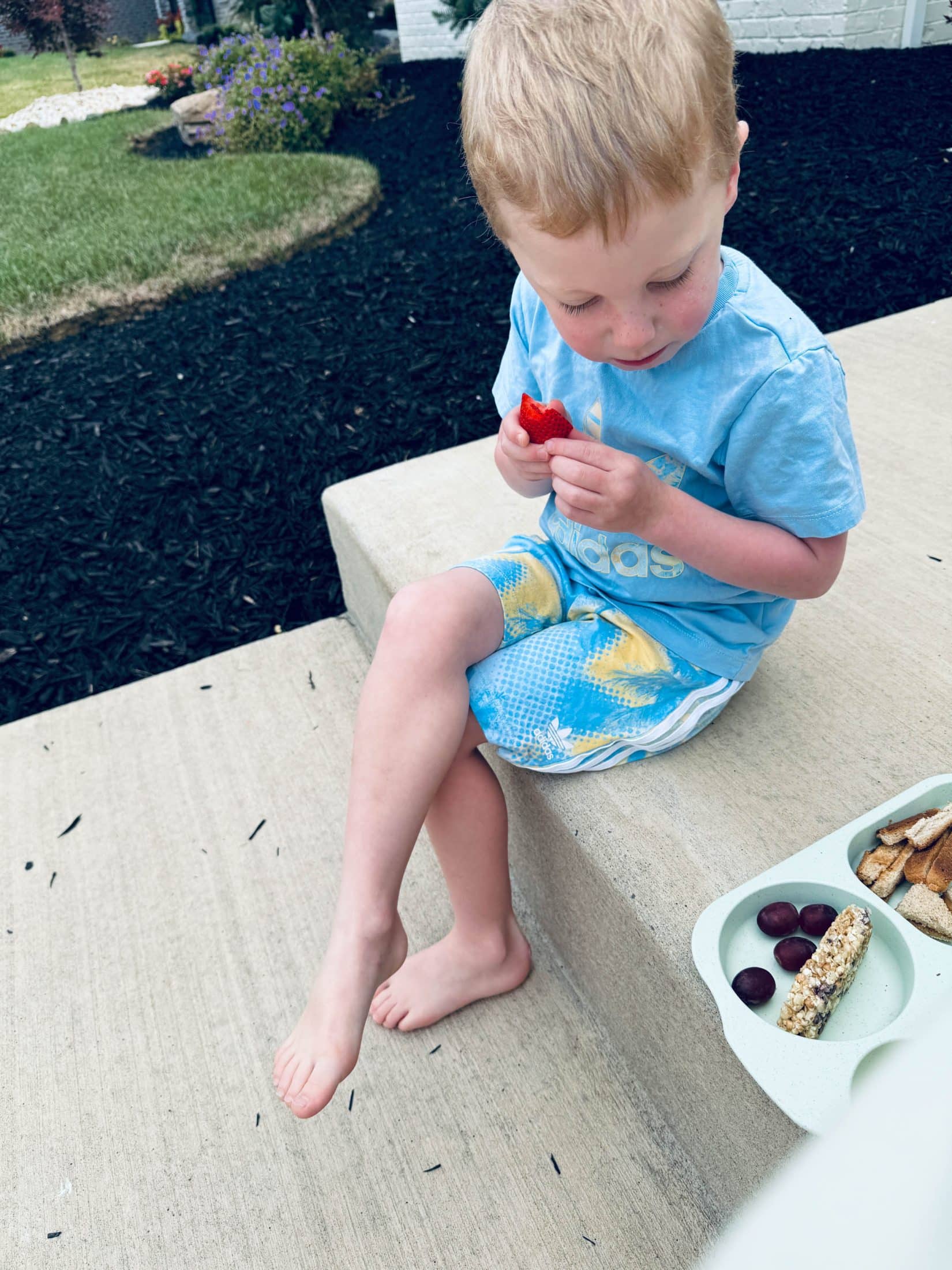 Waffles, cheese, a cut up zbar and strawberries… I love it. Haha.