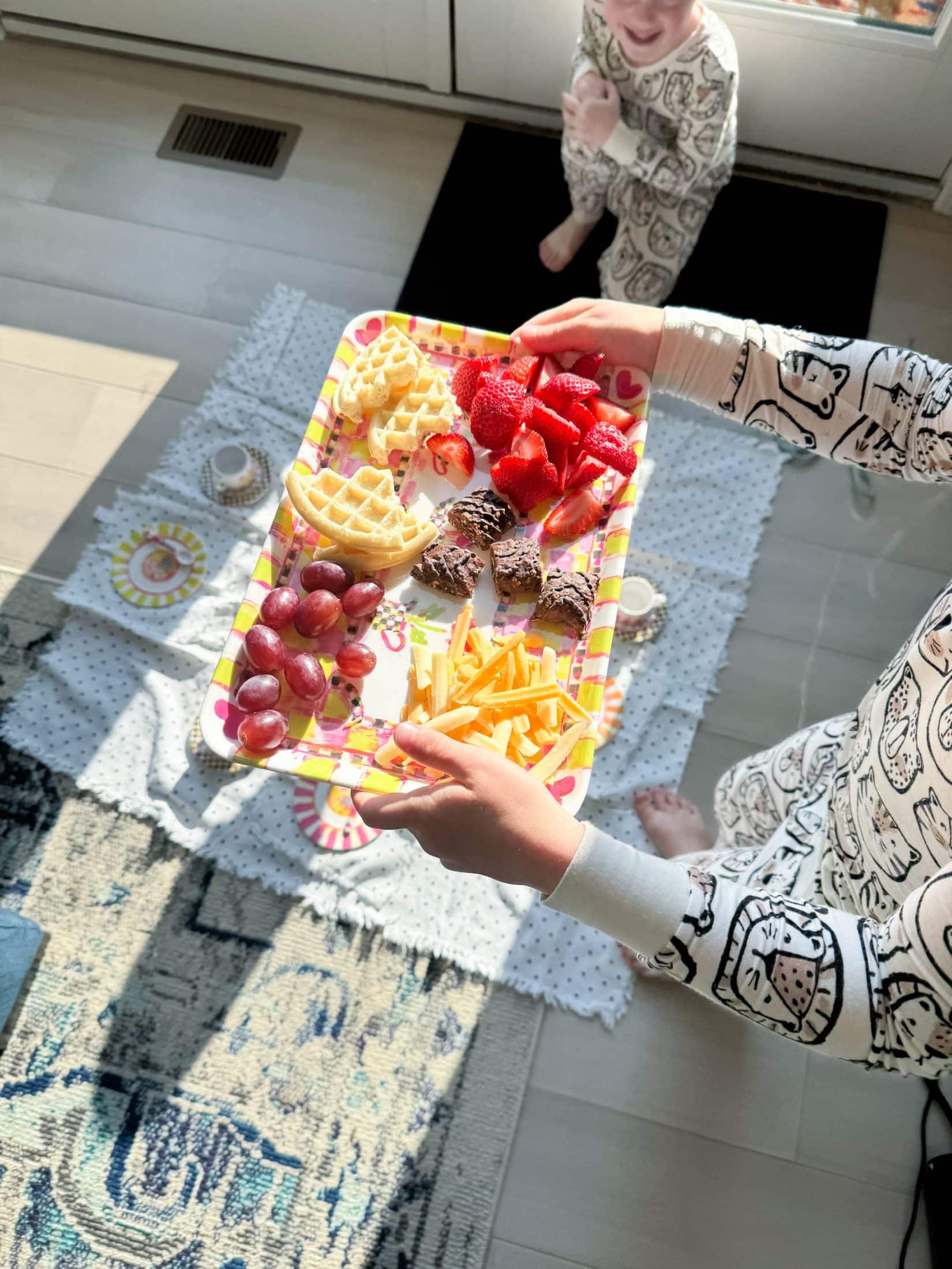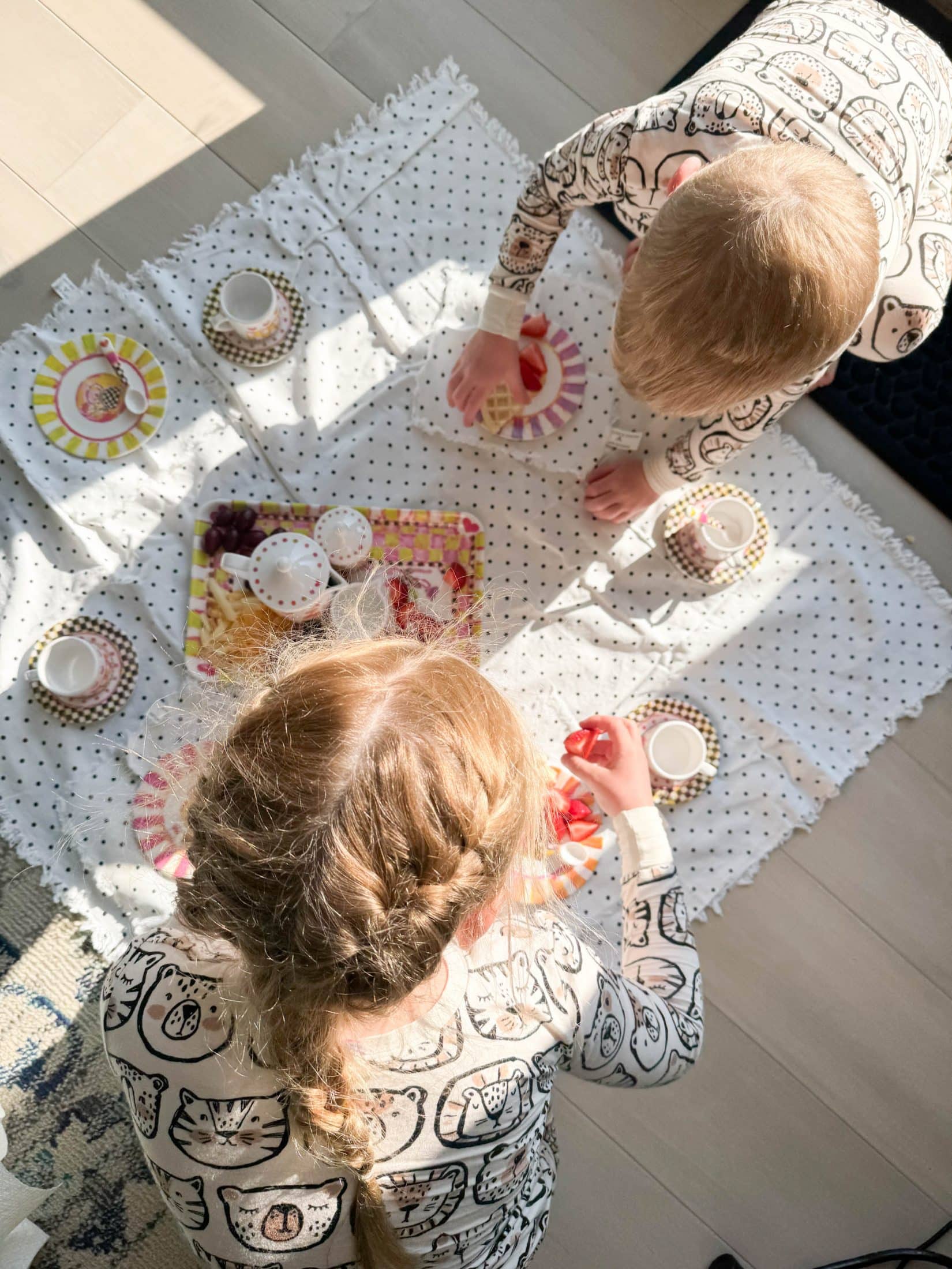 Then she made a morning tea party picnic for her and Jordan!