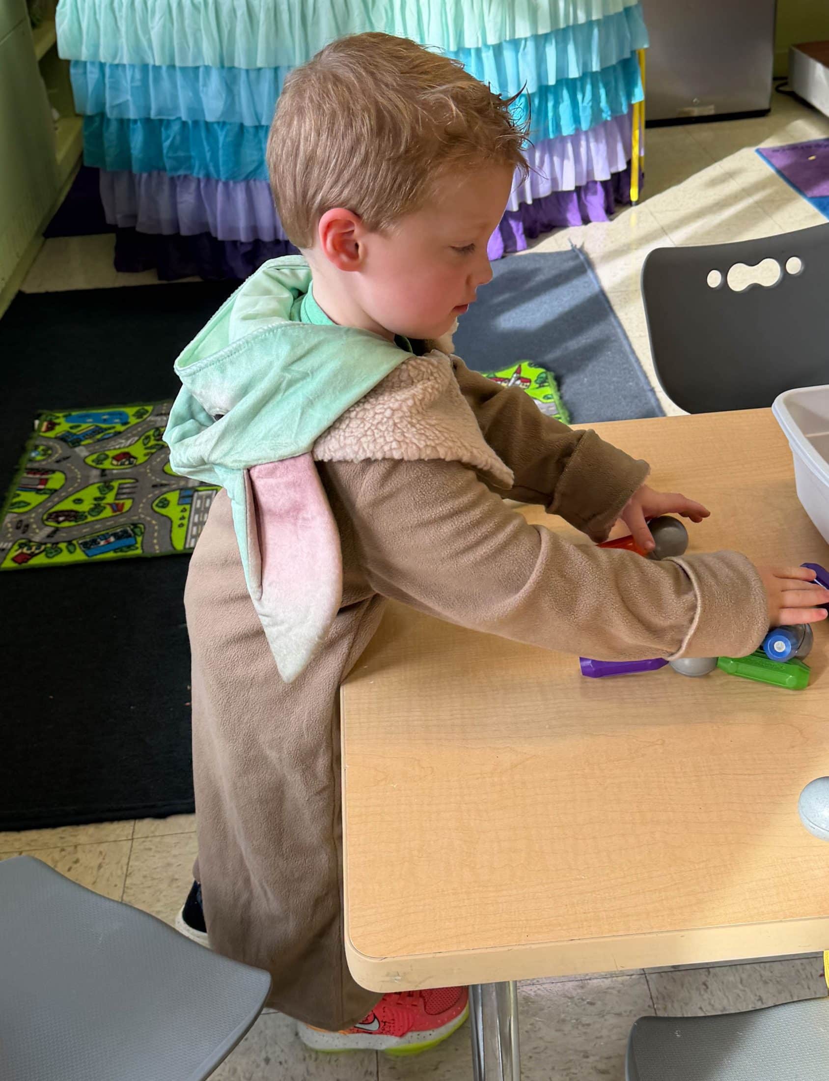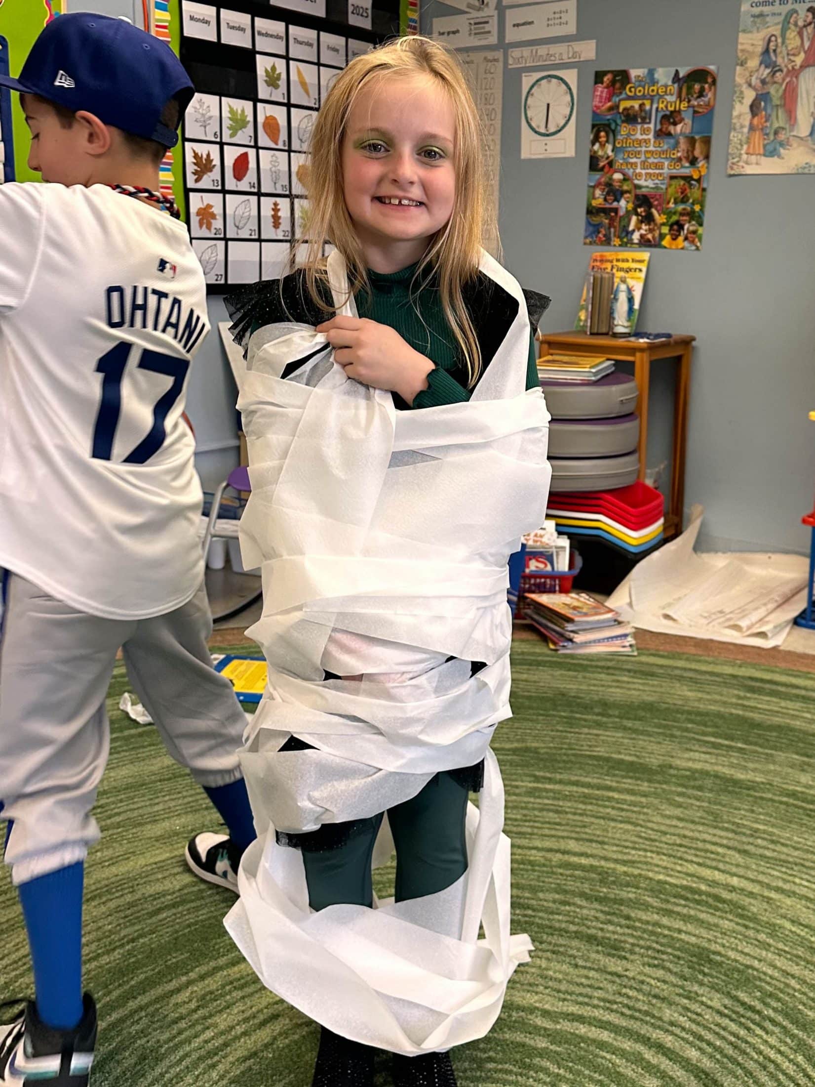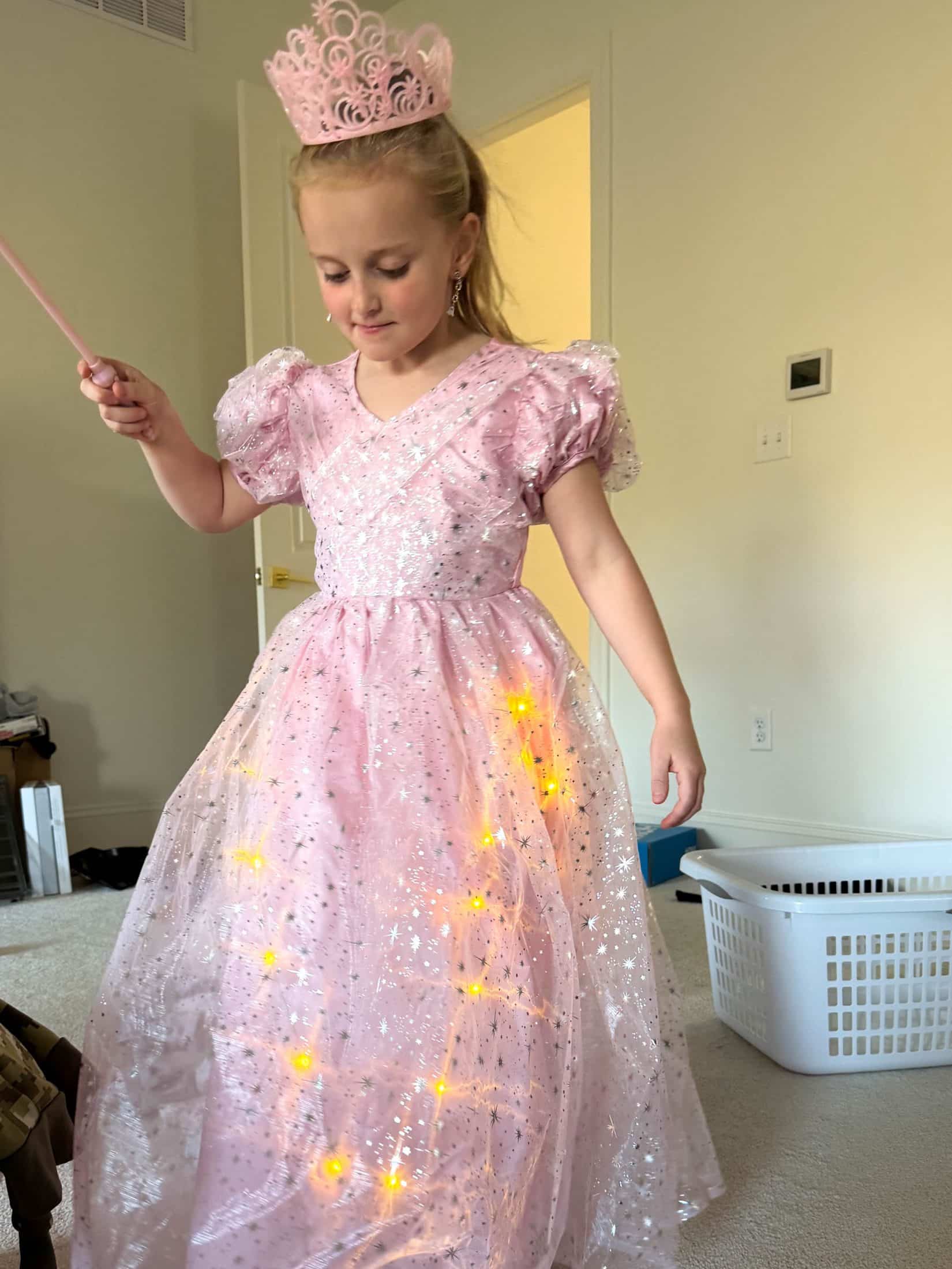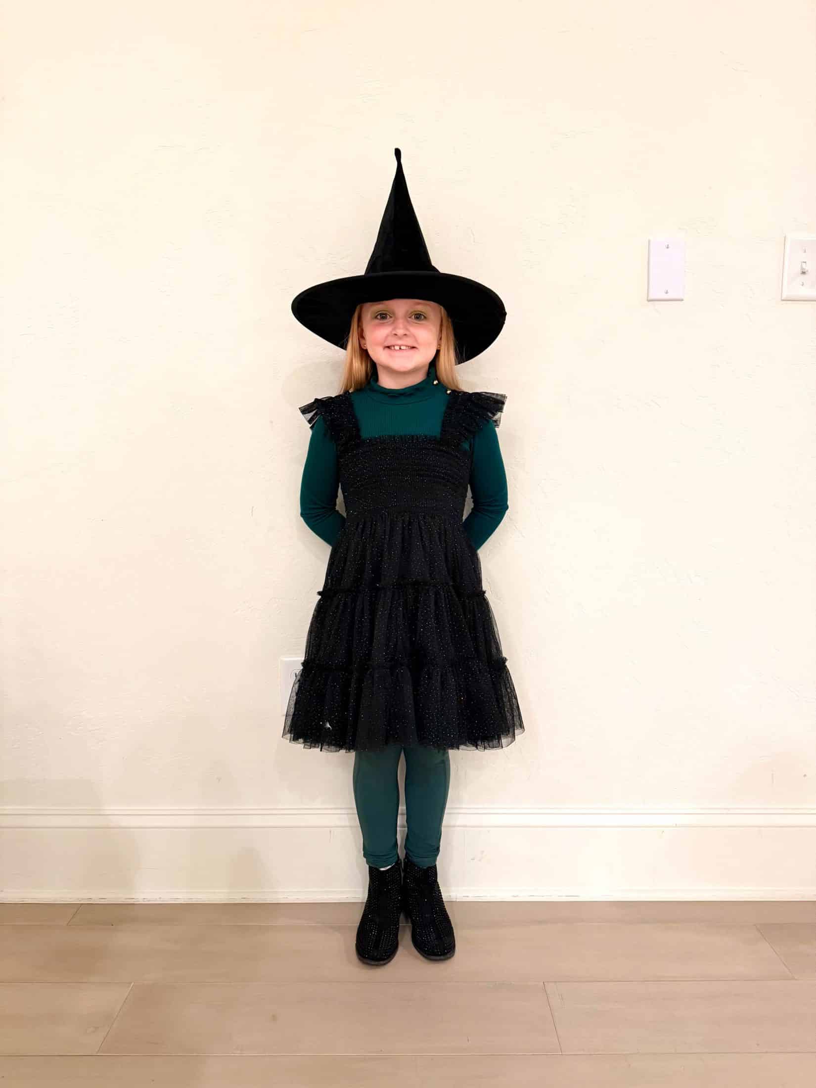 We did a little switch up for school because she was afraid her dress was too long and poofy to deal with in class. Elphaba from her closet!
