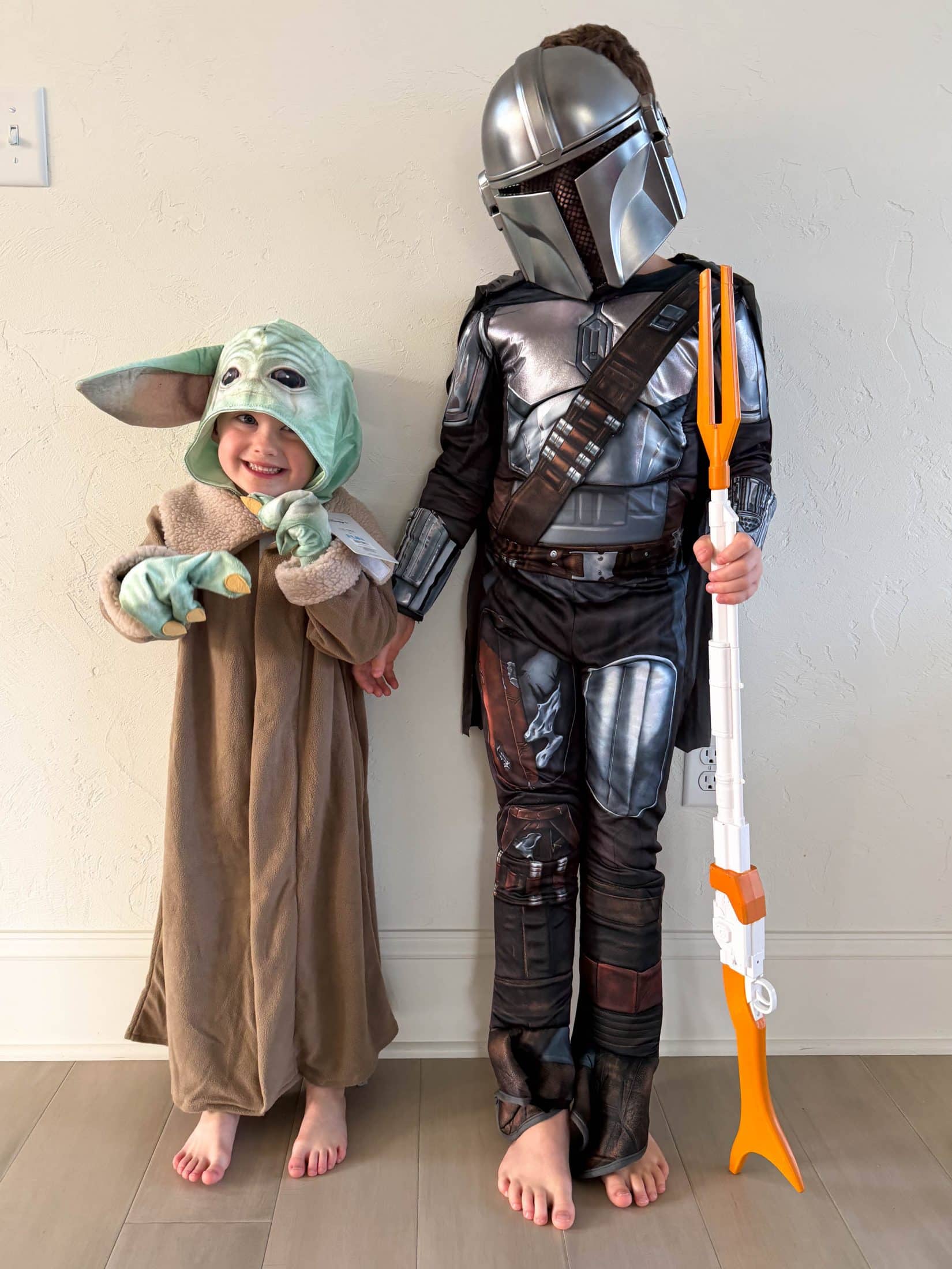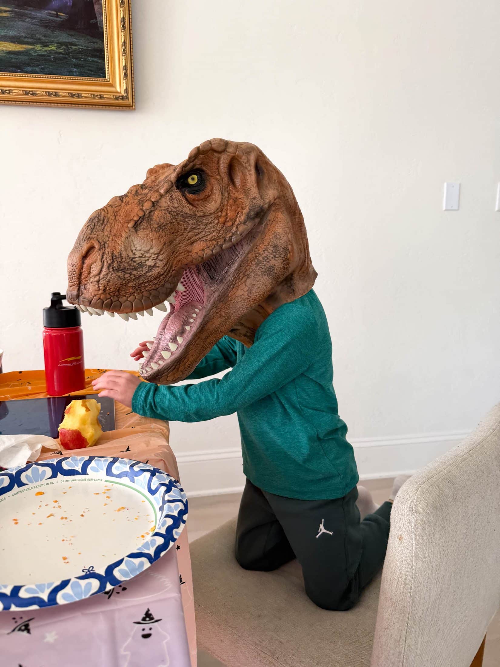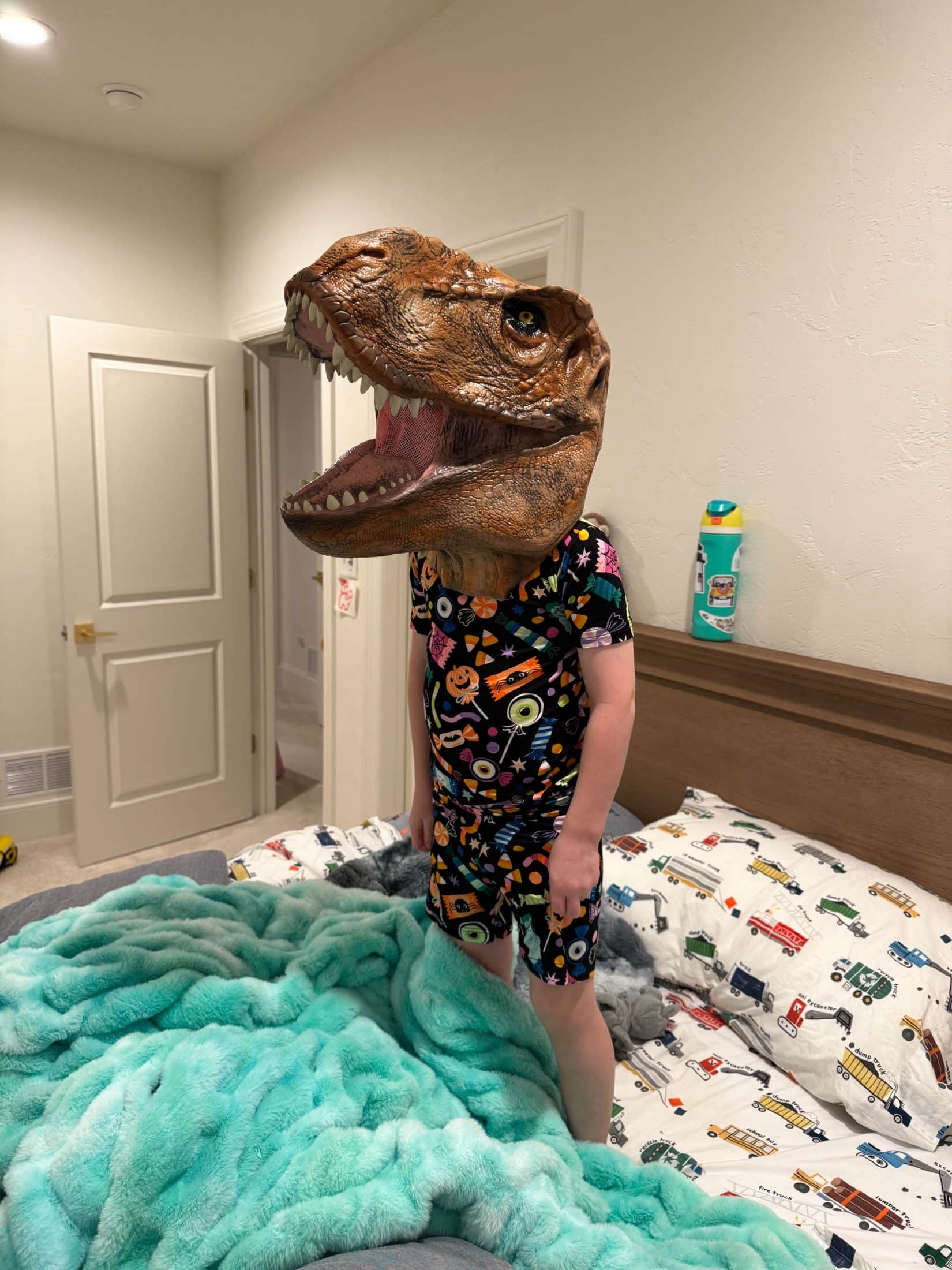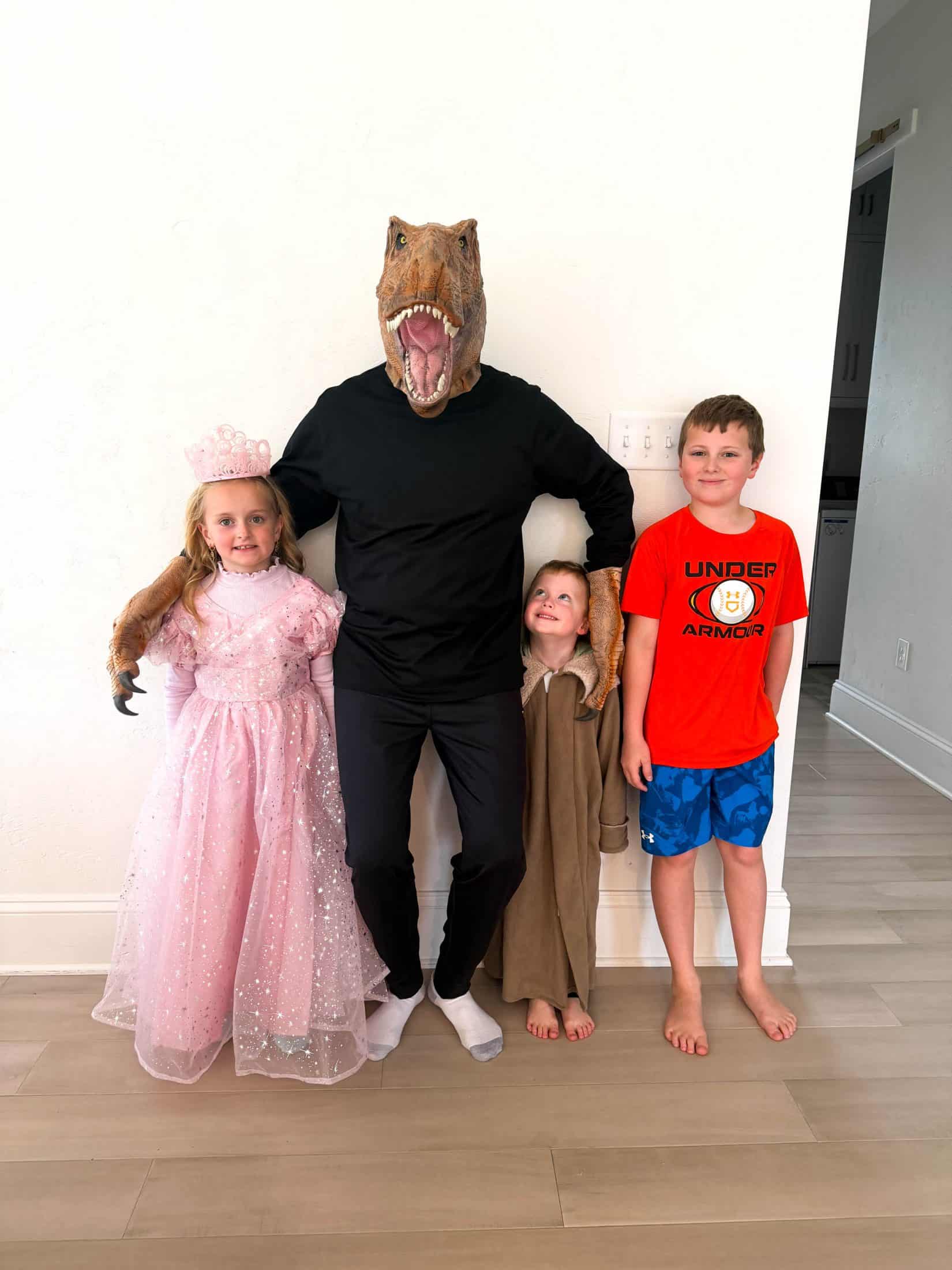 My dad always shows up in the best costumes! The kids are still obsessed with everything Jurassic World so they LOVED this.