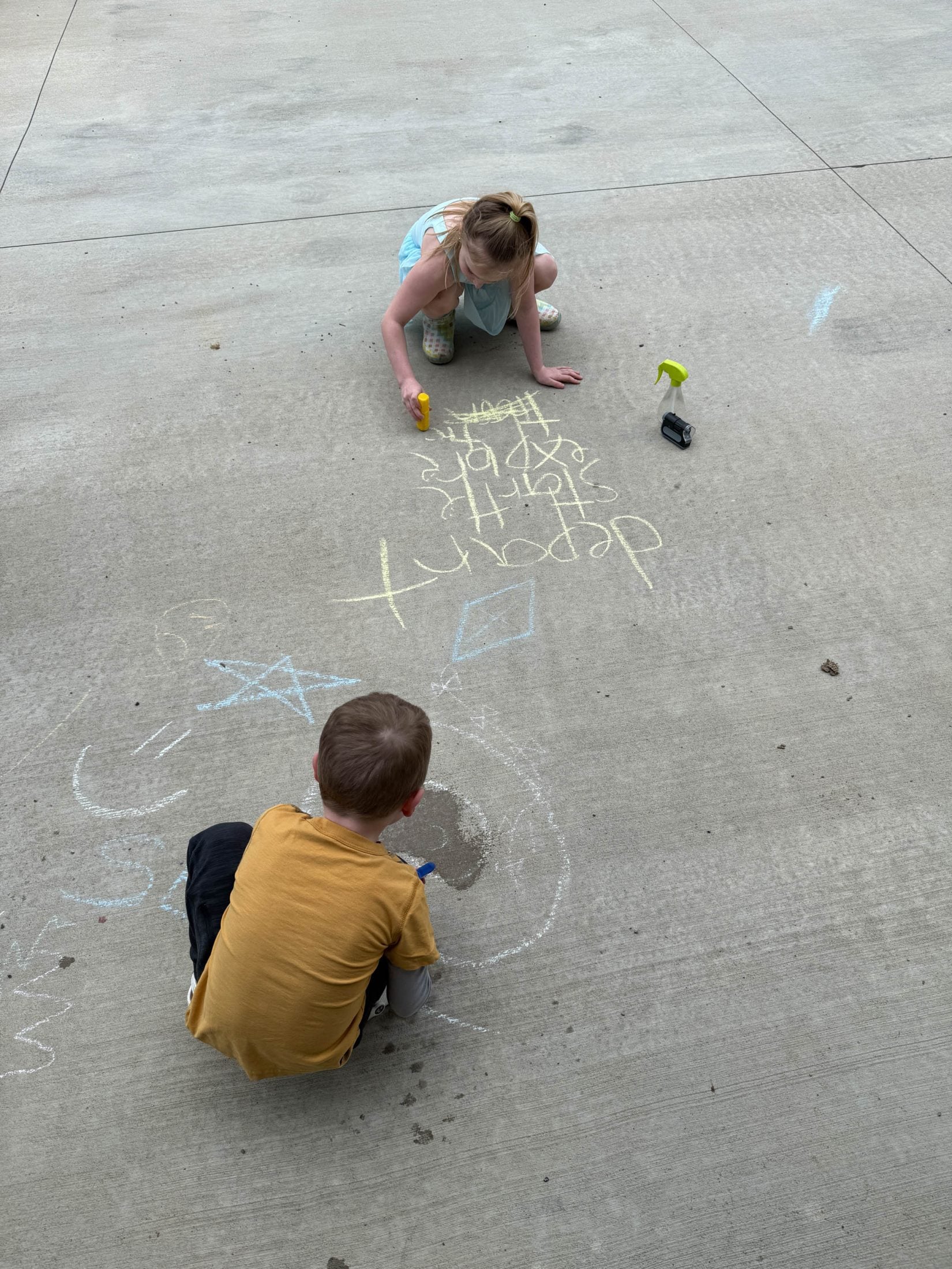 Spelling words in chalk.