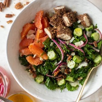 This pecan crusted chicken salad is bringing allll the cheer in the new year. Doesn’t it look so fresh?! So filling? So I-want-to-jump-in-right-now good?