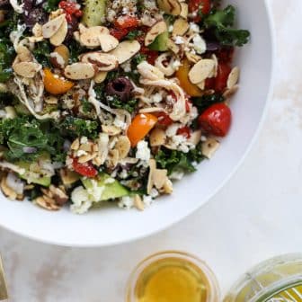 I have one heck of a flavor explosion for you today – my favorite Mediterranean kale salad! Okay, this is embarrassing.