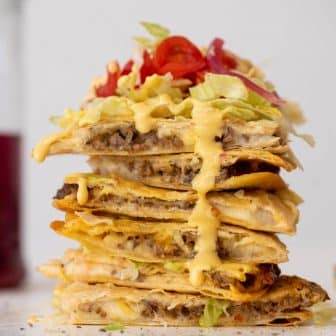 These crispy baked cheeseburger quesadillas are a huge favorite in our house. Crispy flour tortillas filled with cheddar cheeseburger beef, topped with lettuce, tomato,...