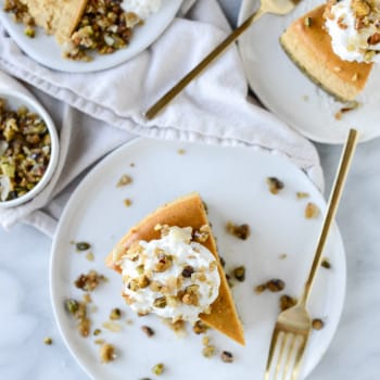 Annnnd a pistachio macaroon crumble on top. Save me. Isn’t that the fluffiest cake o’ love you’ve ever seen? I just want to...