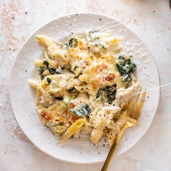 This spinach artichoke pasta skillet is such a fabulous side dish! It’s creamy, cheesy, indulgent and takes barely any time at all. All the...