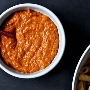 Roasted Red Pepper Penne serves 4 2 large red peppers 3 cloves of garlic 1/3 cup parmesan cheese 4-5 basil leaves, torn 1/4 teaspoon...