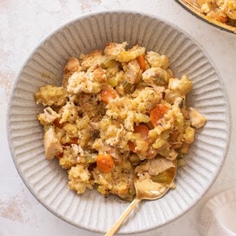 This chicken and biscuit crumble is the ultimate comfort food. Think chicken pot pie with a golden, buttery crumbly topping that adds a bit...
