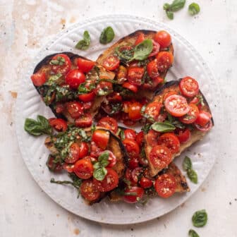 This is the best grilled bruschetta that you can make all summer long! Grilled sourdough is topped with super garlicky cherry tomatoes and balsamic...