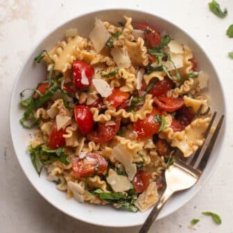 This bruschetta pasta salad is a summer staple! Juicy ripe tomatoes, fresh basil, shaved parmesan and the most delicious balsamic dressing. Serve immediately or...
