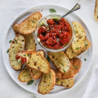 This baked camembert is the loveliest holiday appetizer! Made with cranberry, rosemary and hot honey, it’s melty and cheesy, served hot with crostini and...