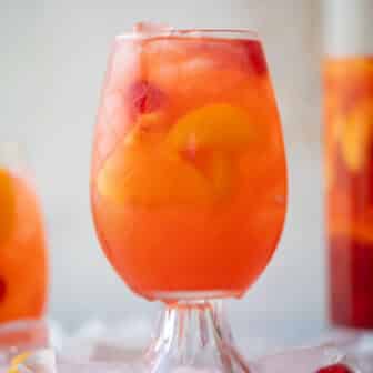 This summer tequila fruit punch is perfect for a BBQ or pool party. Cherry and pineapple and orange mixed with tequila, bubbles and frozen...