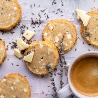 This white chocolate lavender shortbread is a perfect slice and bake cookie! It is so light but rich and buttery at the same time...