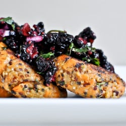 Sweet Potato Quinoa Cakes with Blackberry Salsa.
