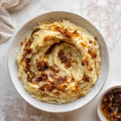 Brown Butter Hasselback Potatoes with Caramelized Onions.