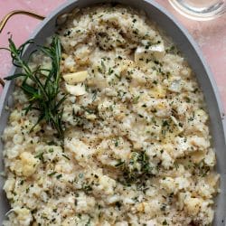 Toasted Cauliflower and Brie Baked Rosemary Risotto.