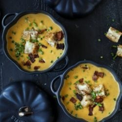 Smoky Pumpkin Bisque with Grilled Cheese Croutons.
