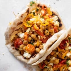 Roasted Chickpeas with Sweet Peppers and Feta.