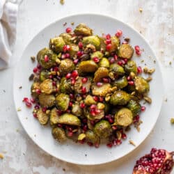 Maple Mustard Roasted Brussels Sprouts.