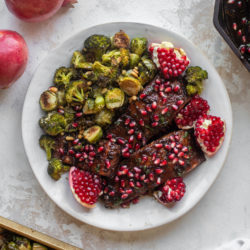 Sticky Pomegranate Salmon with Brussels & Broccoli.